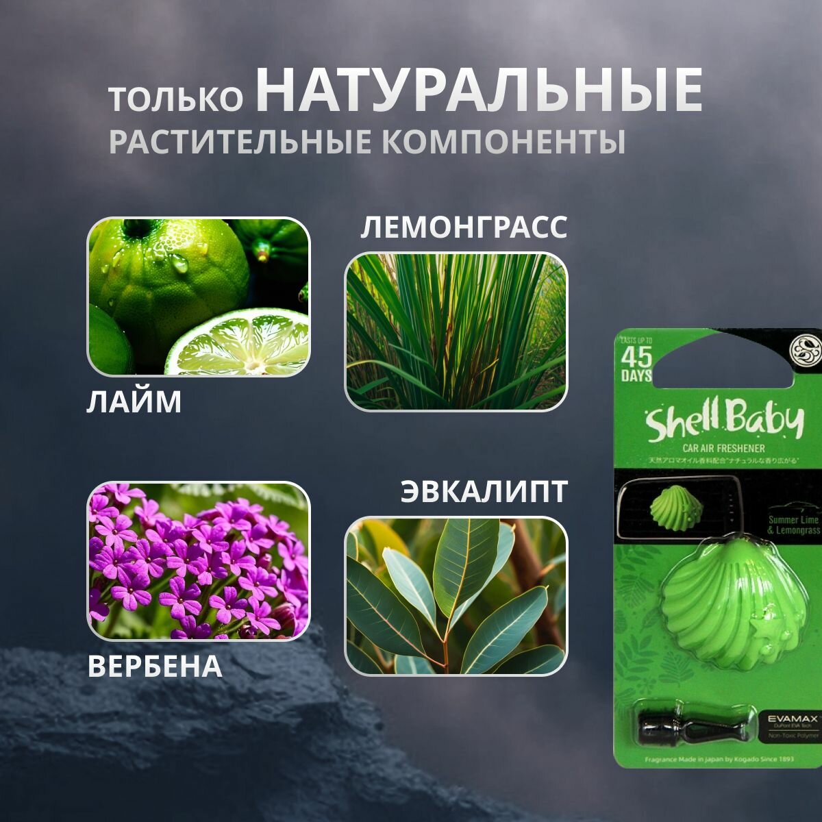 Ароматизатор в машину Kogado Shell Baby на кондиционер Summer Lime&Lemongrass арт. 3246 информация: