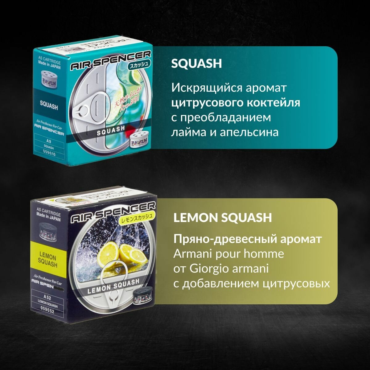 10 цен на EIKOSHA Набор ароматизаторов для машины и дома Spirit Refill - SQUASH, LEMON SQUASH / свежесть, лимонная свежесть, автомобильный парфюм (арт. A-9, A-52)