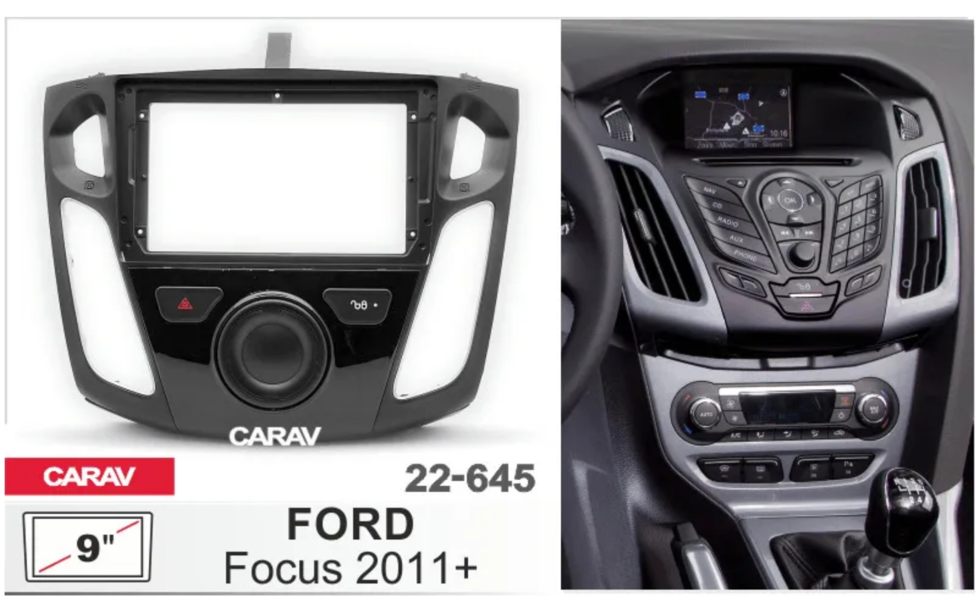 Переходная рамка 9" Android для FORD Focus 2011-2019 с кнопками и платой / CARAV 22-645 информация: