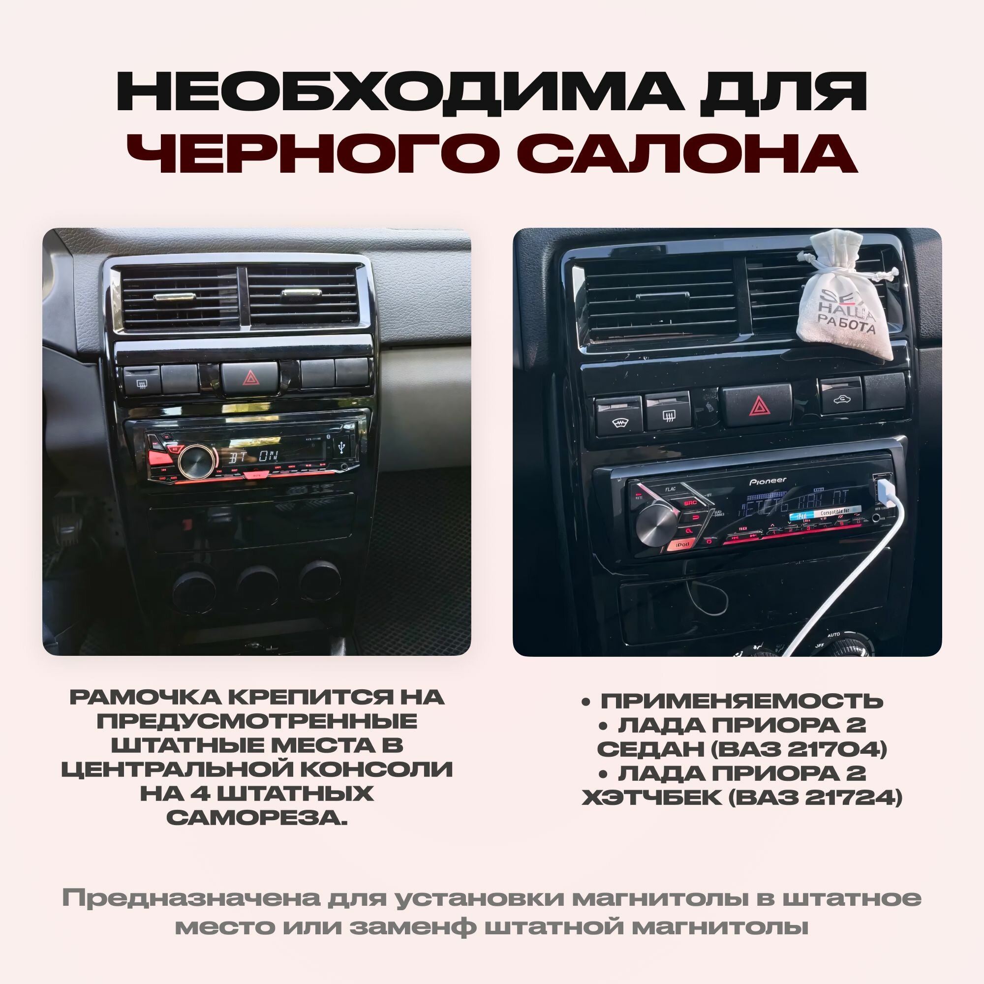 Переходная рамка Черный глянец под установку 1DIN магнитолы для Лада Приора 2 информация: