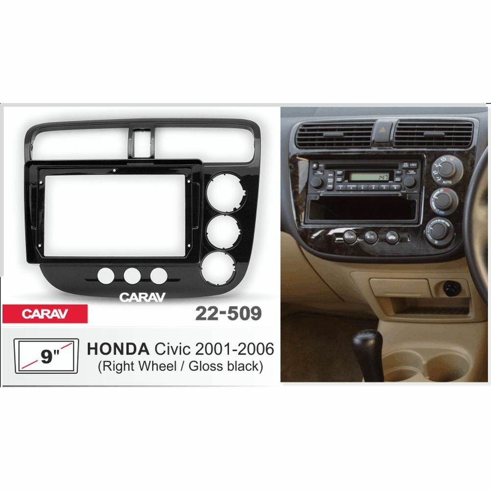 Отзывы на Переходная рамка 9" Android для HONDA Civic 2001-2006 правый руль CARAV 22-509