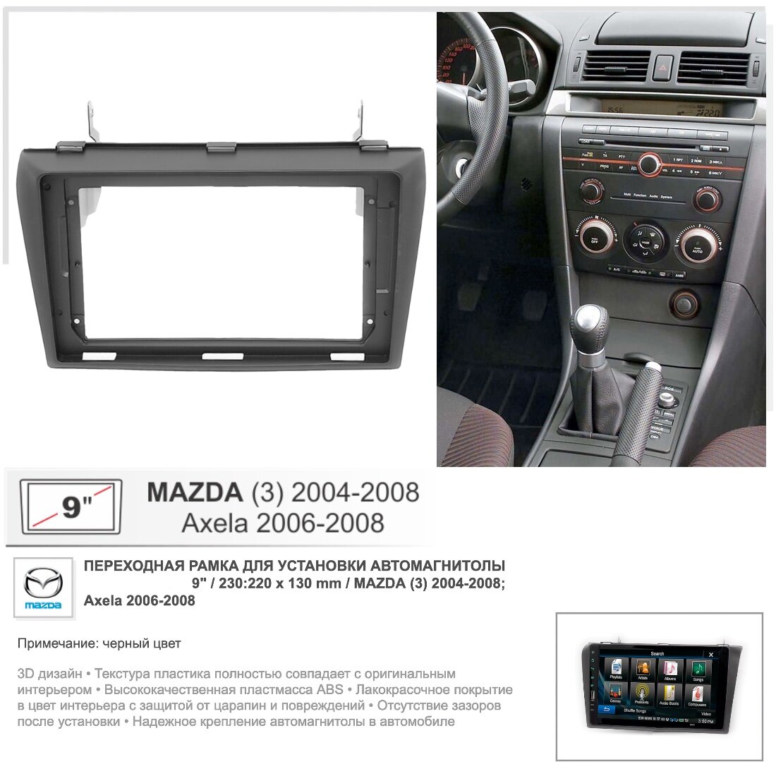 Переходная рамка Mazda (3) 2004-2008; Axela 2006-2008 , 9" дюймов информация: