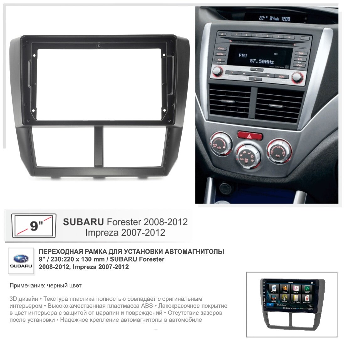 10 цен на Переходная рамка Subaru Forester 2008-2012, Impreza, XV 2007-2012, 9" дюймов (FC503)