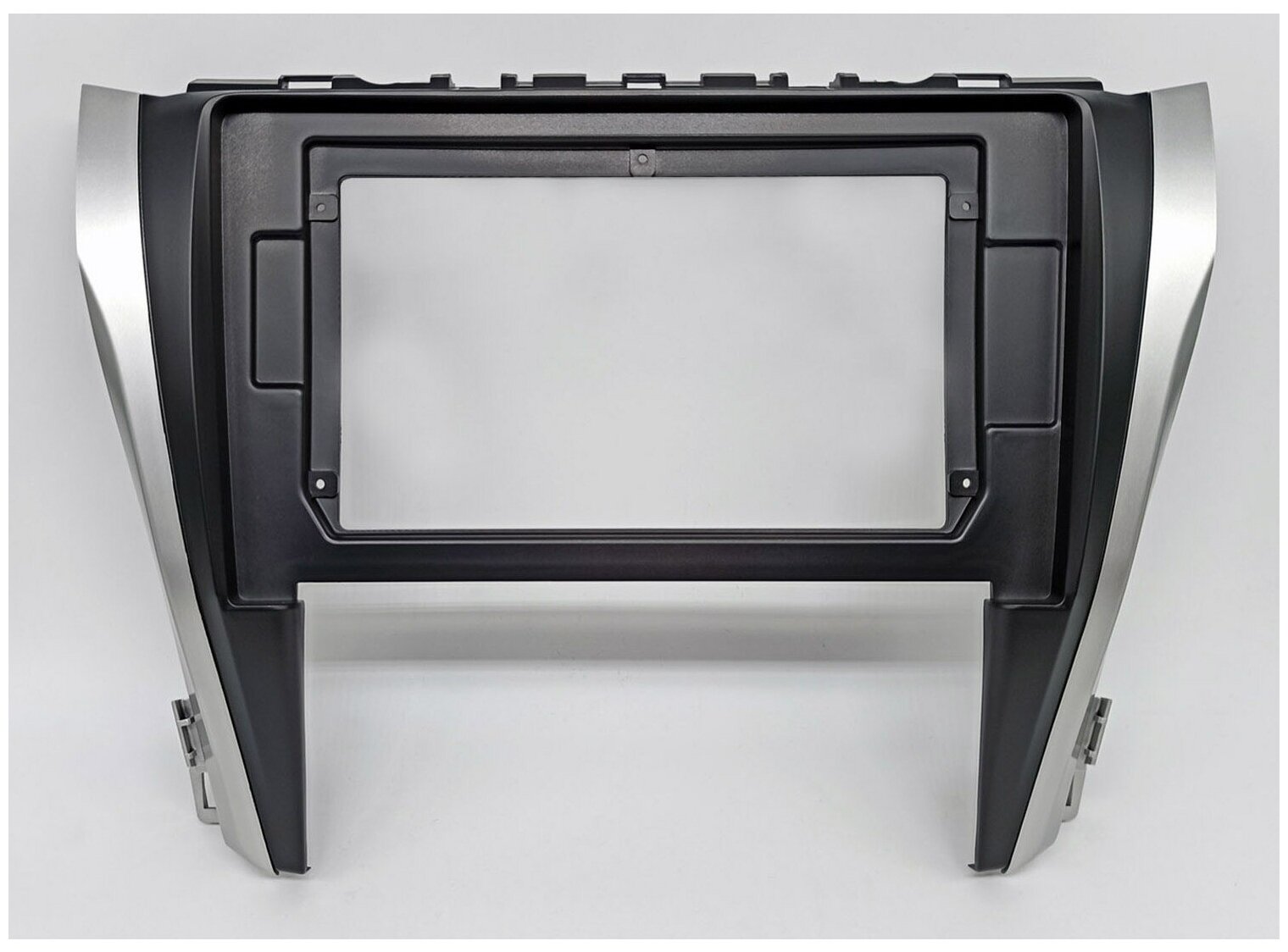 Переходная рамка Toyota Camry V55 черная (10-дюймов), черная матовая с серебристыми вставками. информация: