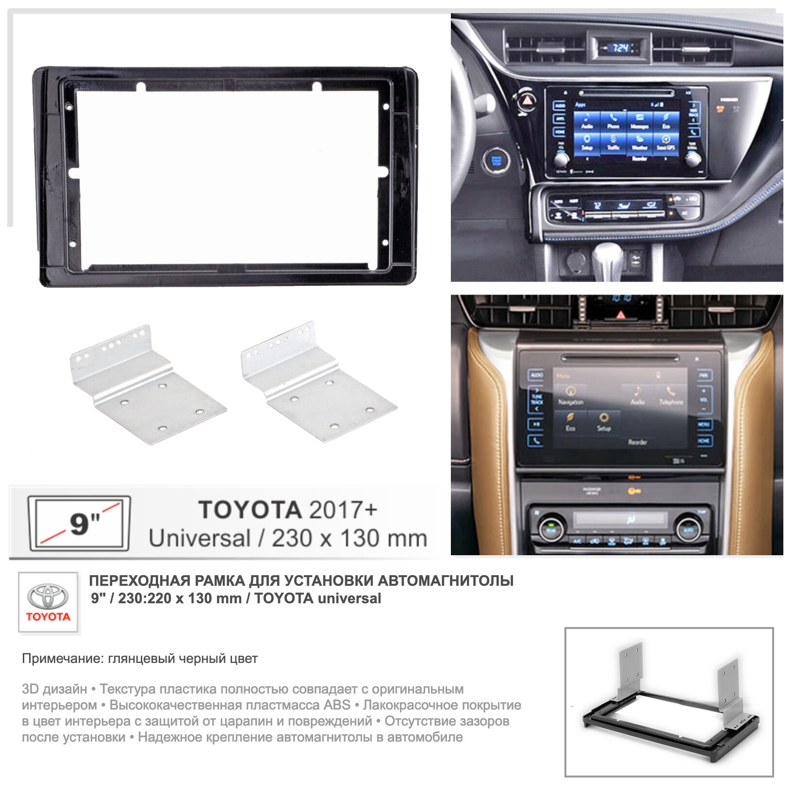 Переходная рамка Toyota OEM Head Units универсальная, 9" дюймов (черный глянец) информация: