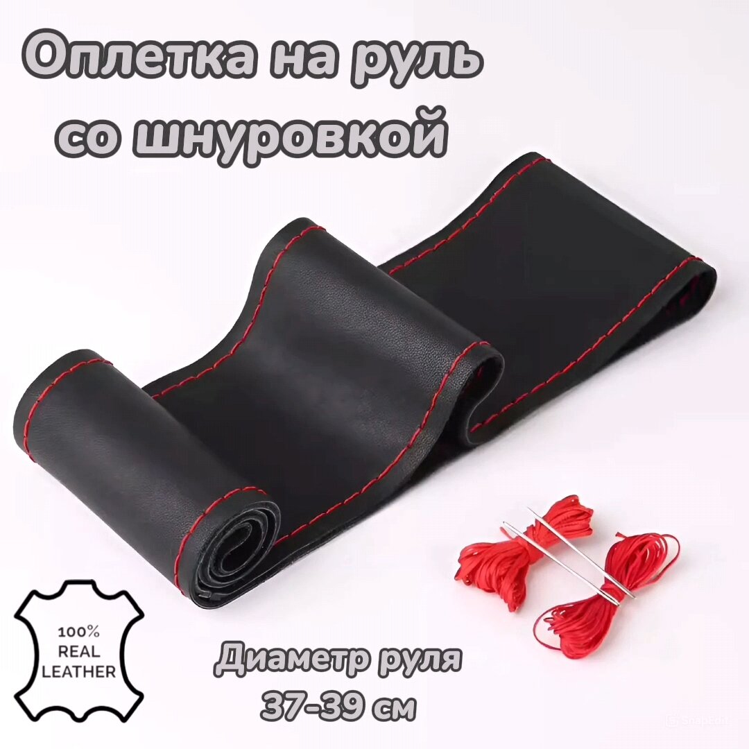 Отзывы на Оплетка на руль со шнуровкой натуральная кожа 37-39см черный с красной нитью