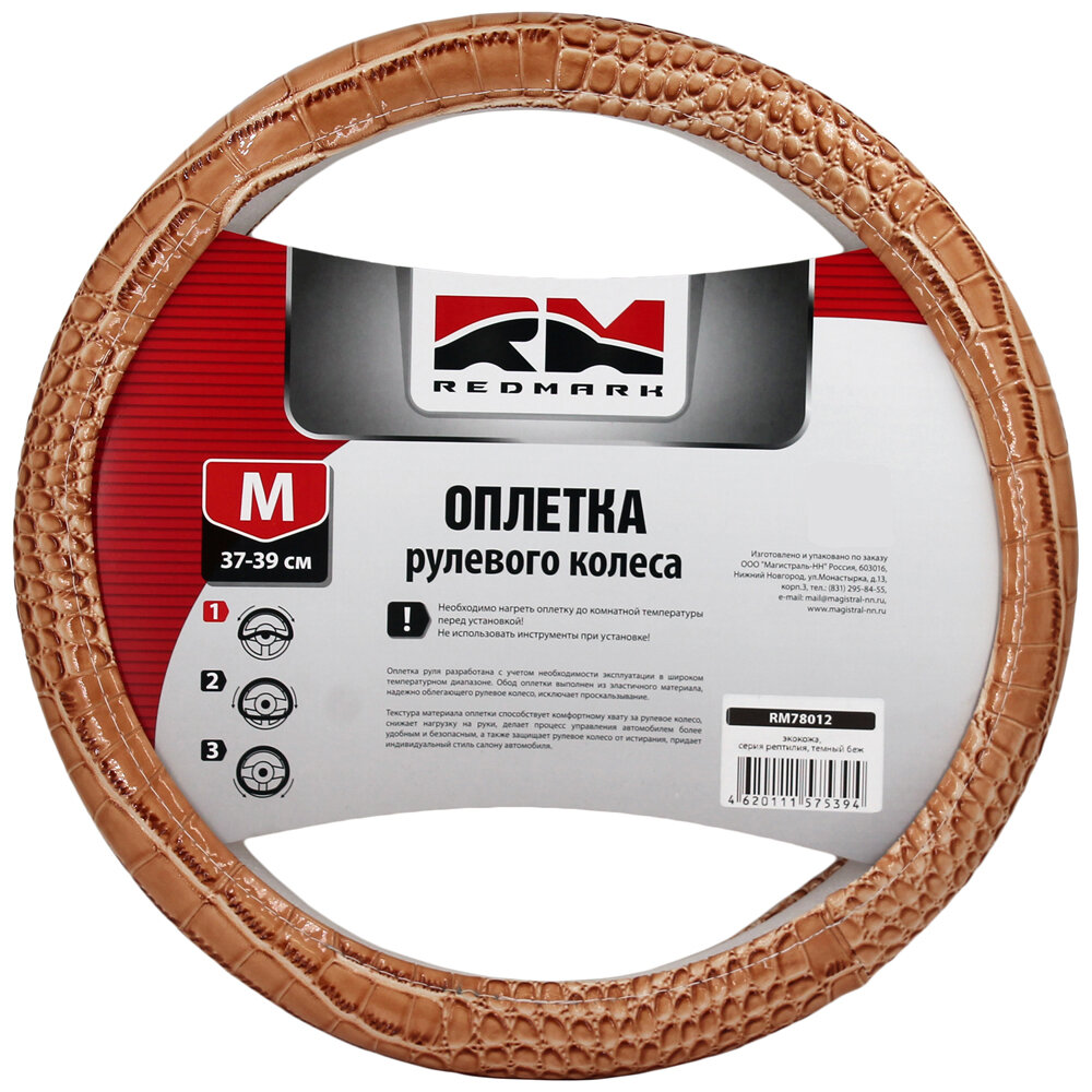 Оплетка руля RedMark, экокожа, М размер, серия, рептилия, темно-бежевый информация:
