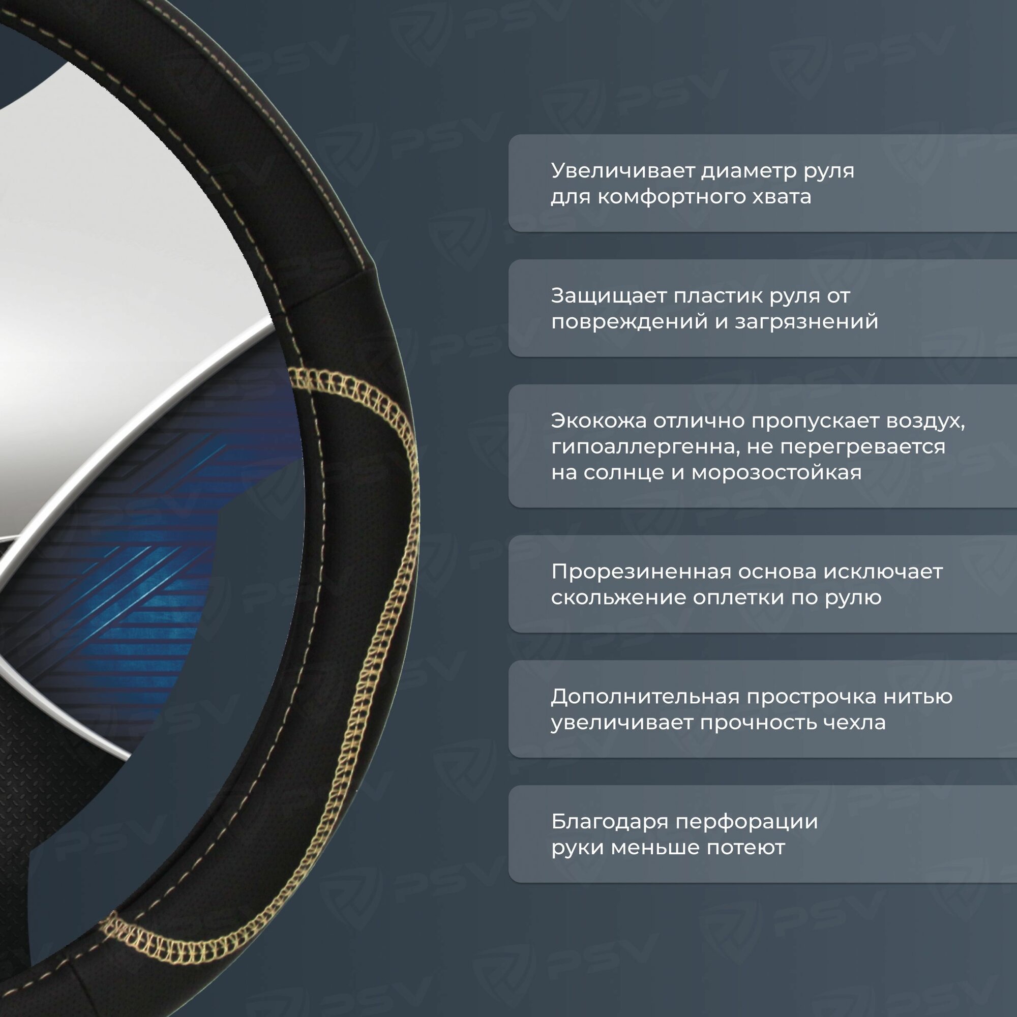 10 цен на Чехол на руль оплетка PSV ARDOR черный/отстрочка бежевая, размер M 37-39 см