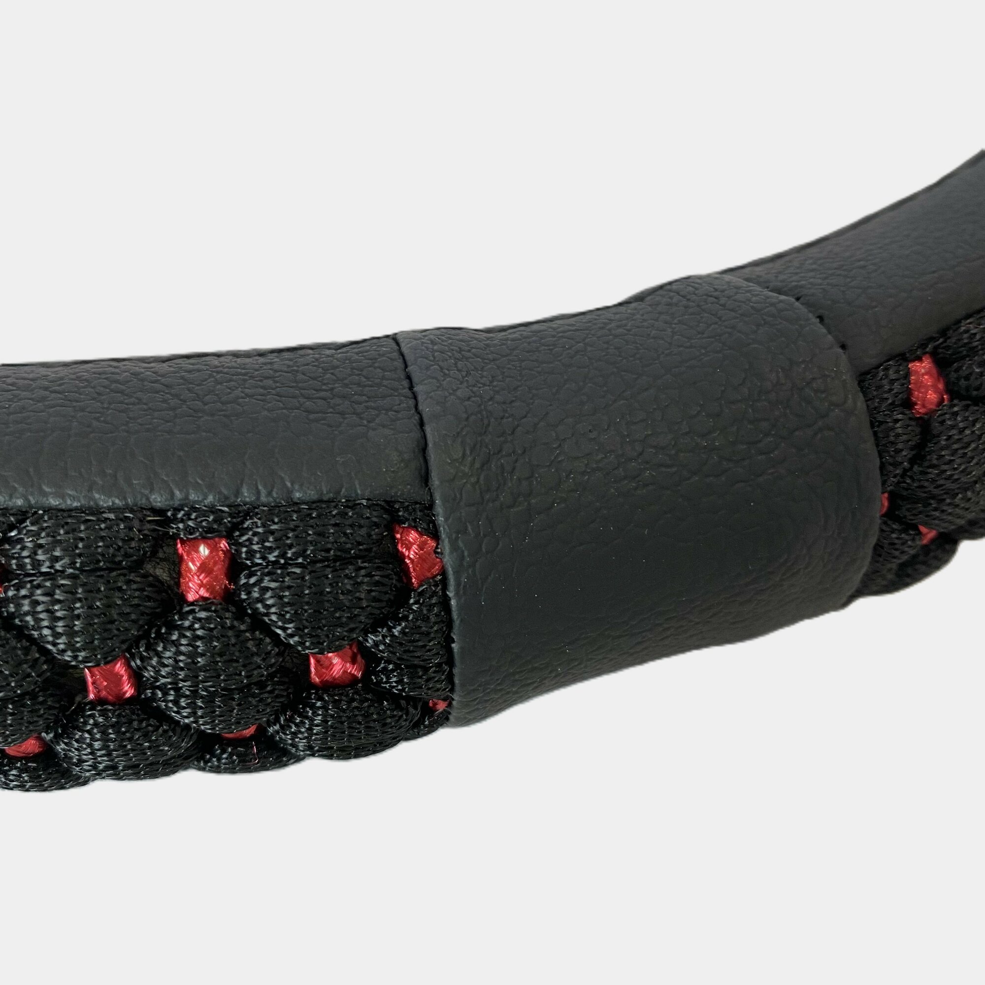 Оплетка на руль из искусственной кожи и ткани 38см черно-красная информация: