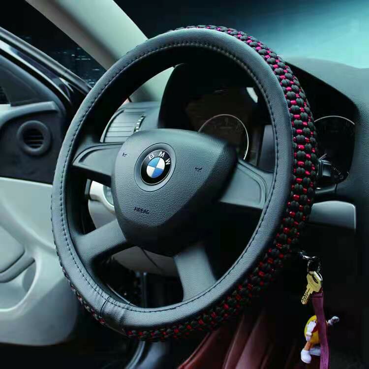 Отзывы на Оплетка на руль из искусственной кожи и ткани 38см черно-красная