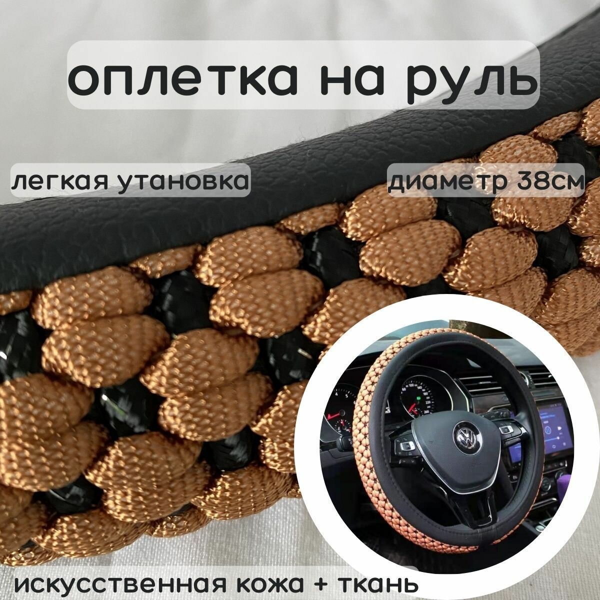 10 цен на Оплетка руля искусственная кожа/ткань, диаметр 38 см