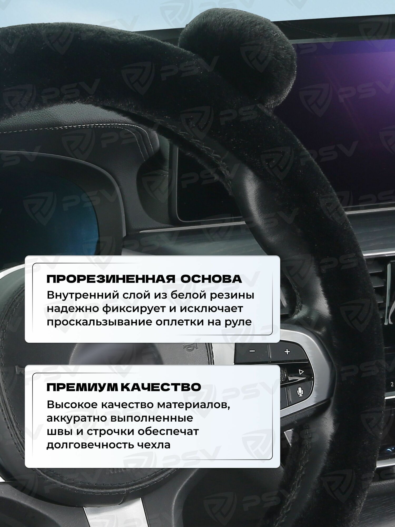 10 цен на Чехол на руль оплетка из искусственного меха PSV MISHKA Lux (Черный) M 37-39 см