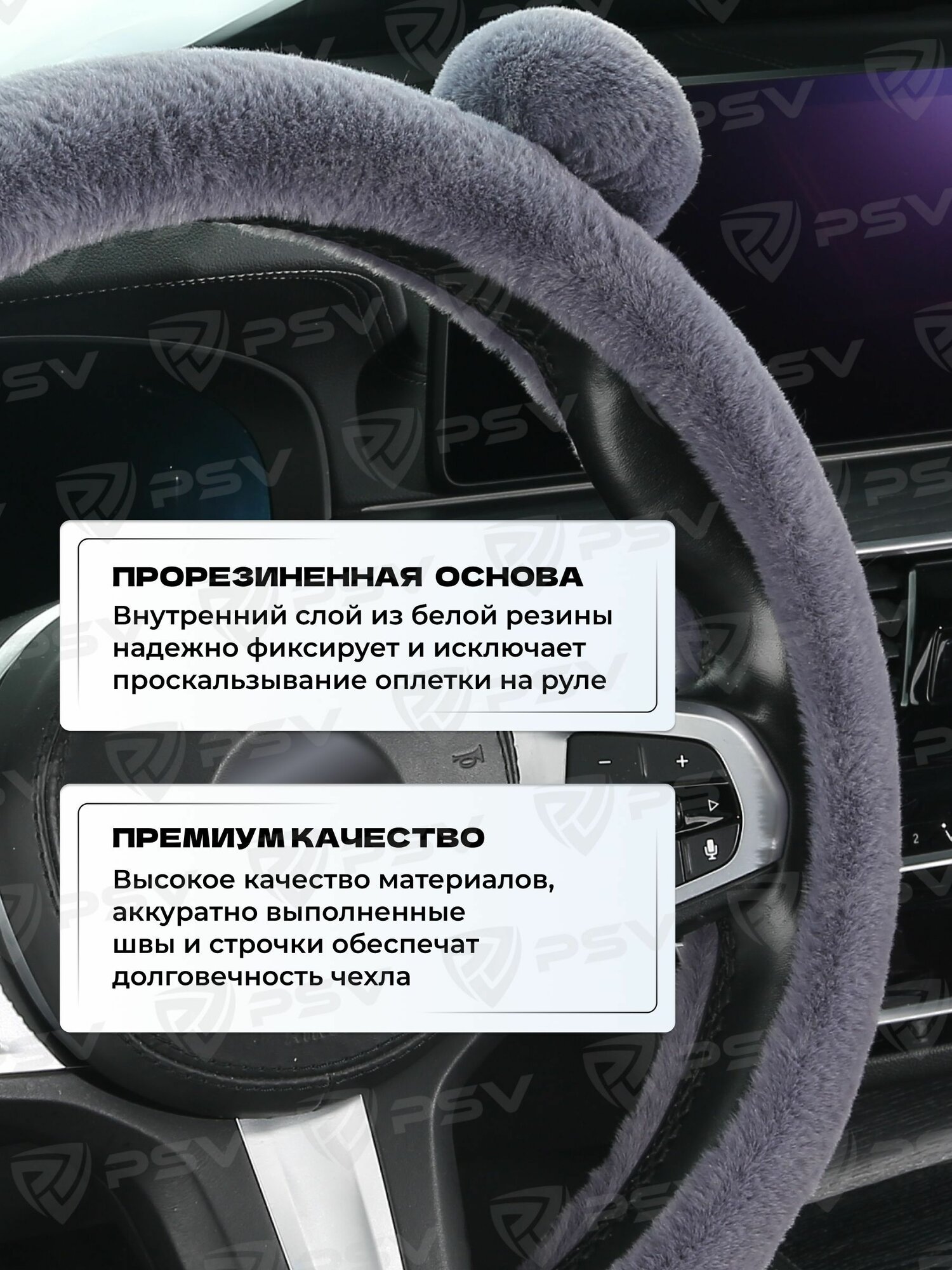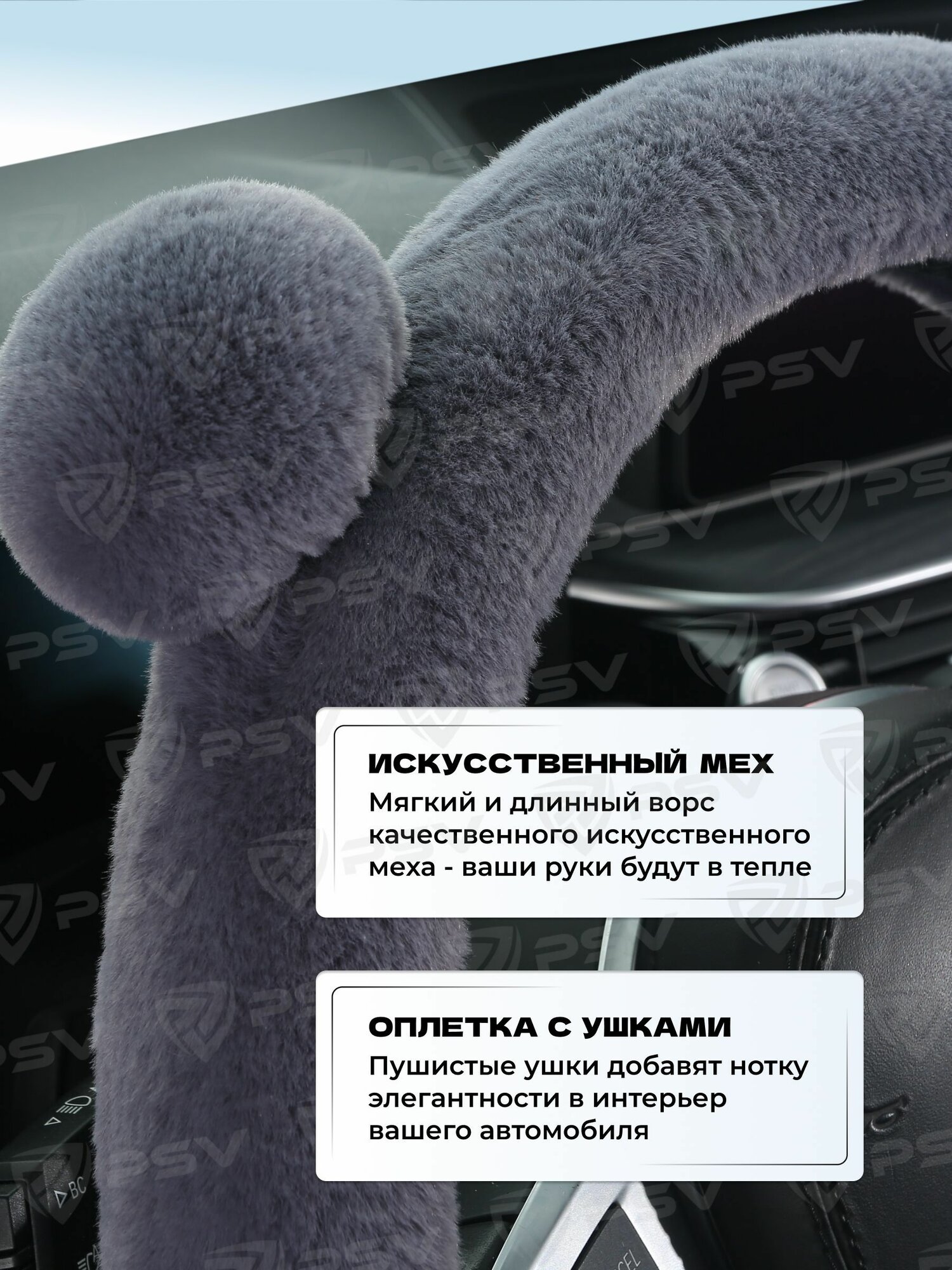 10 цен на Чехол на руль оплетка из искусственного меха PSV MISHKA Lux (Серый) M 37-39 см