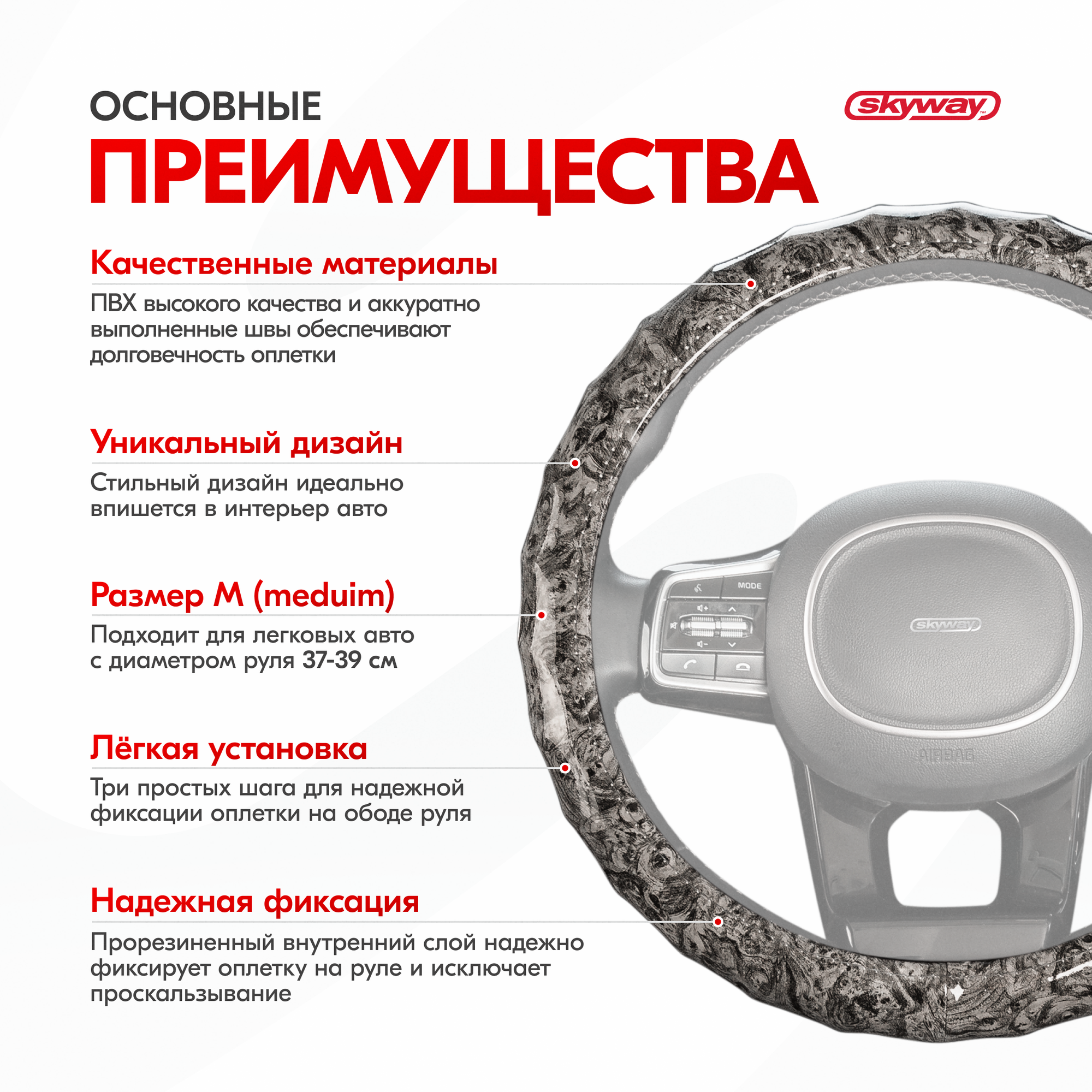 10 цен на Оплетка на руль Style-1 SKYWAY M (37-39) серый ПВХ, S01110002
