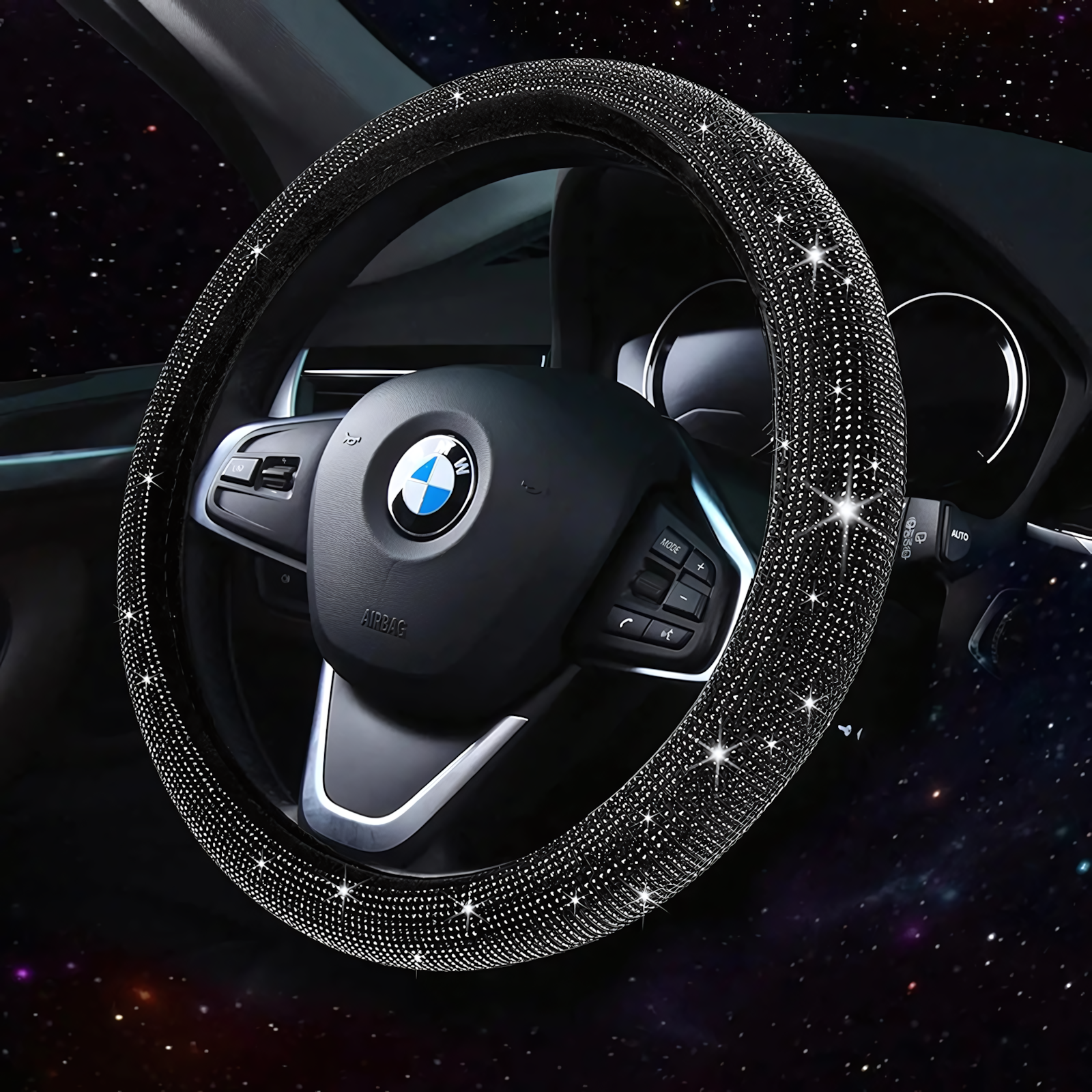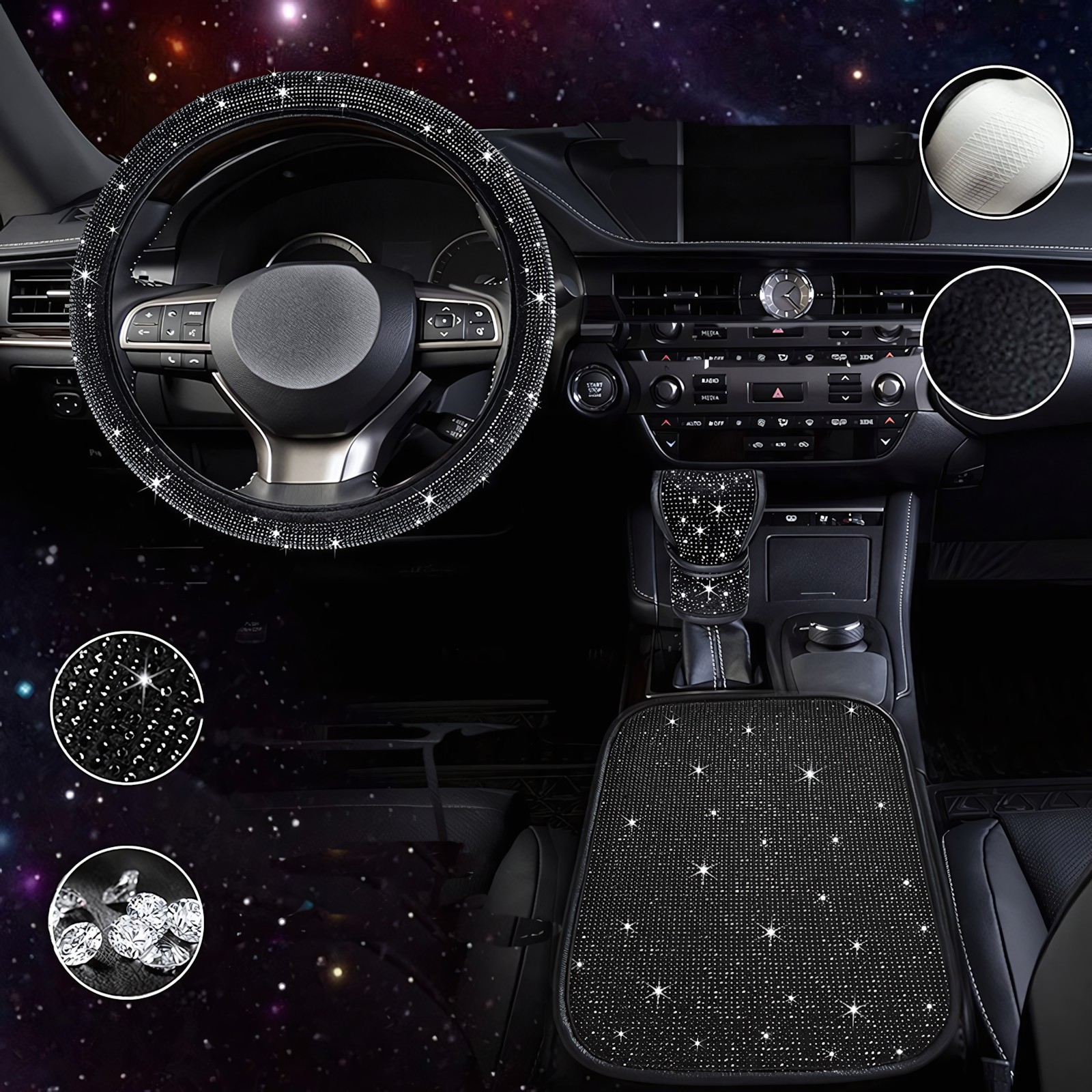 Отзывы на Набор из 3х предметов: оплетка, чехол и накладка для салона авто со стразами, черный
