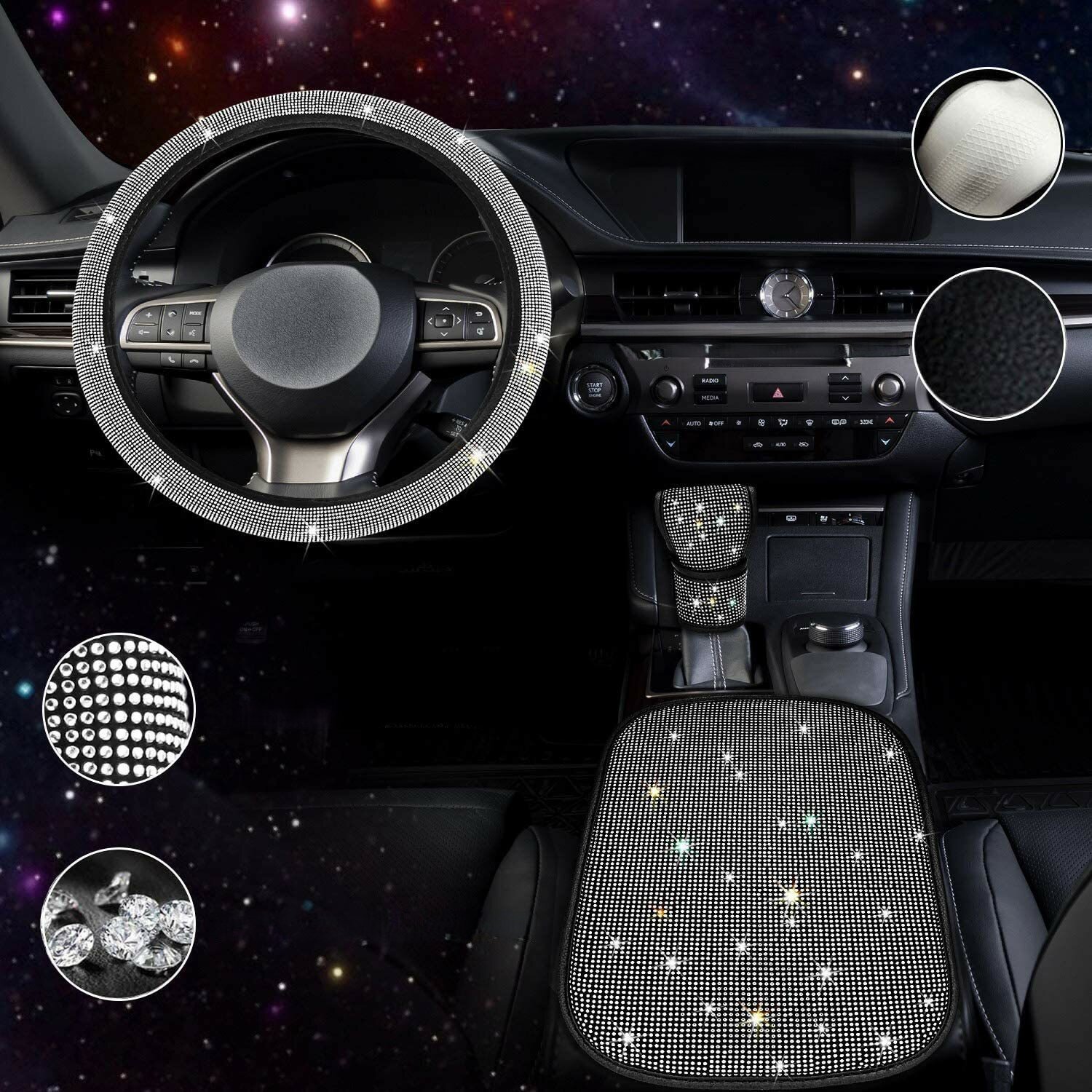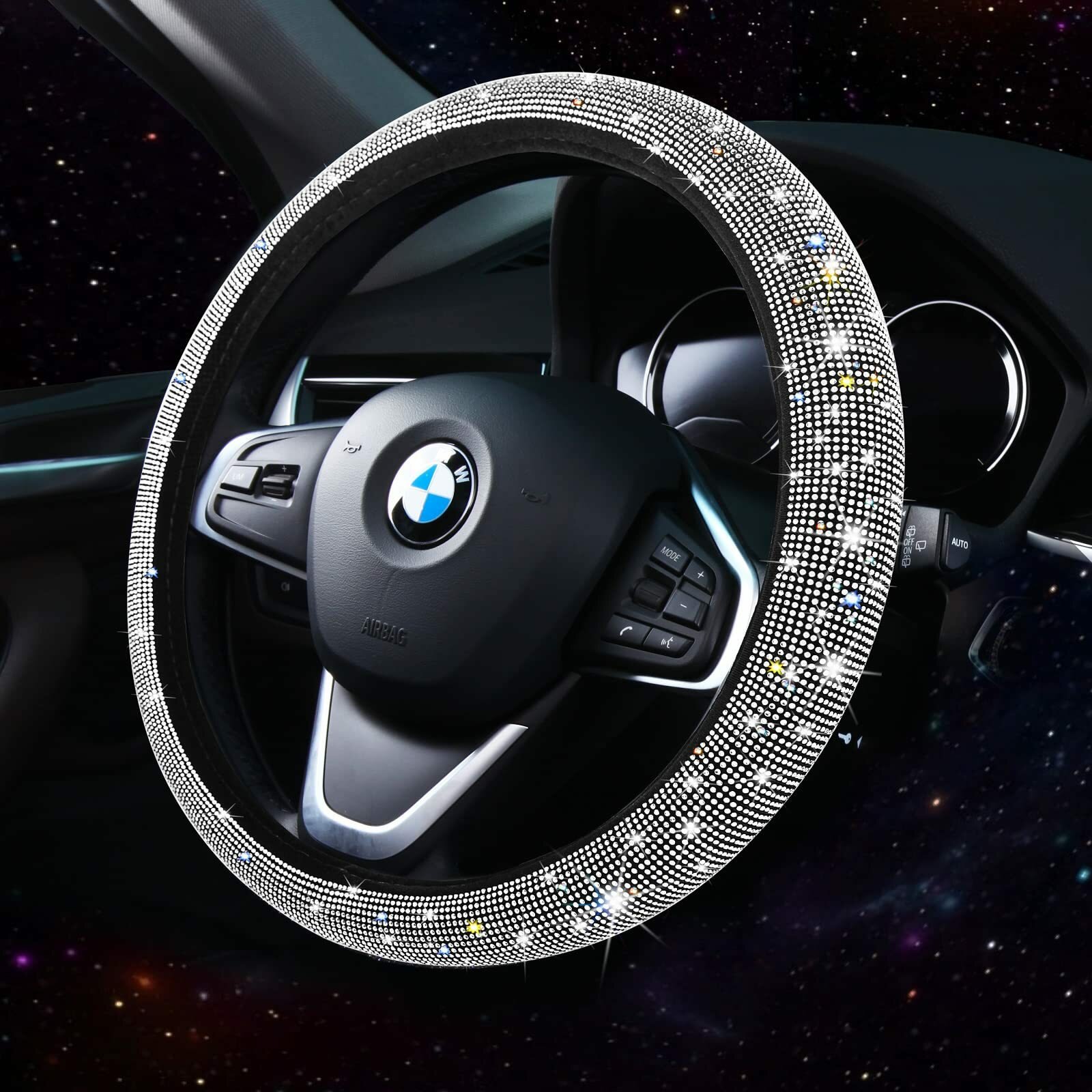 Отзывы на Набор из 3х предметов: оплетка, чехол и накладка для салона авто со стразами, белый