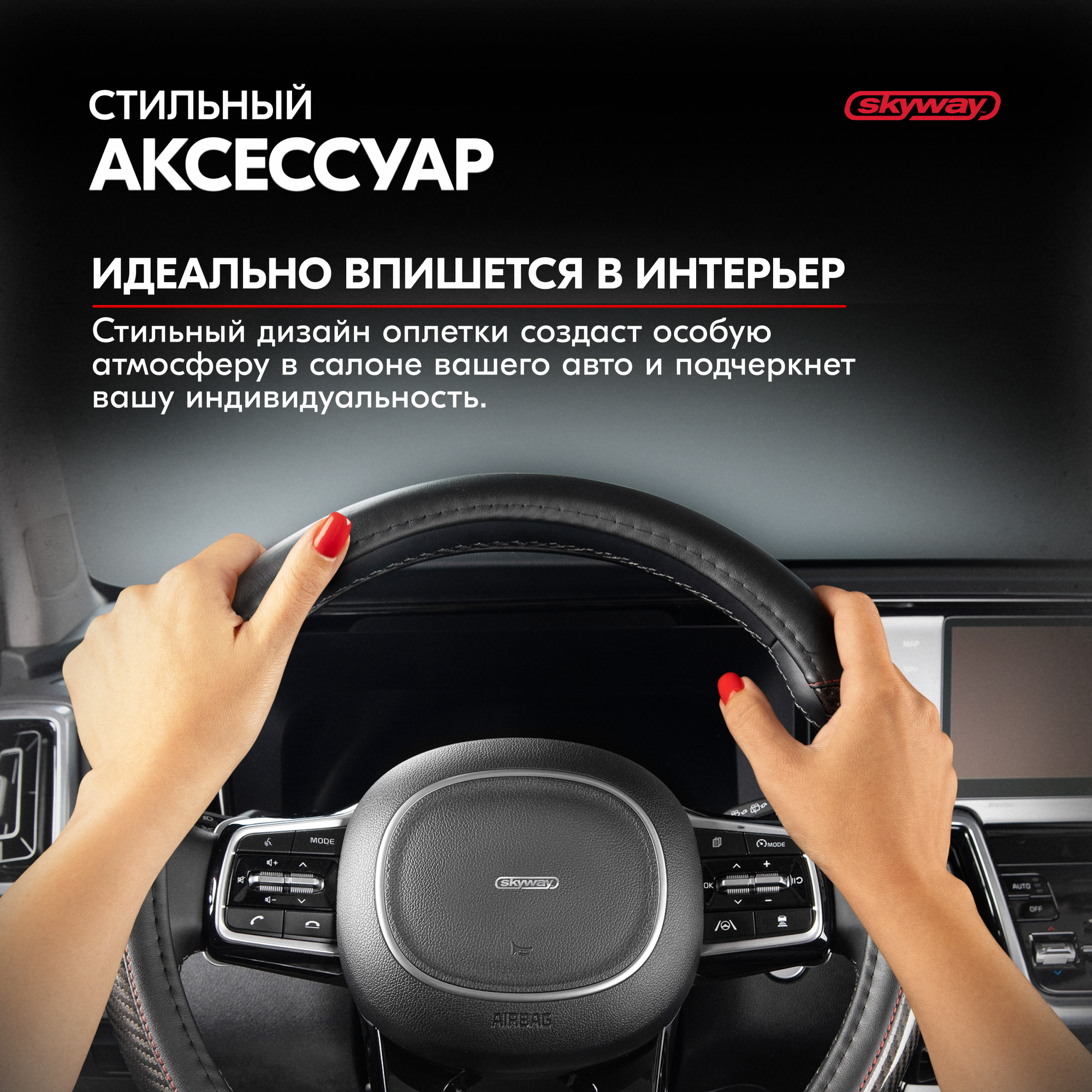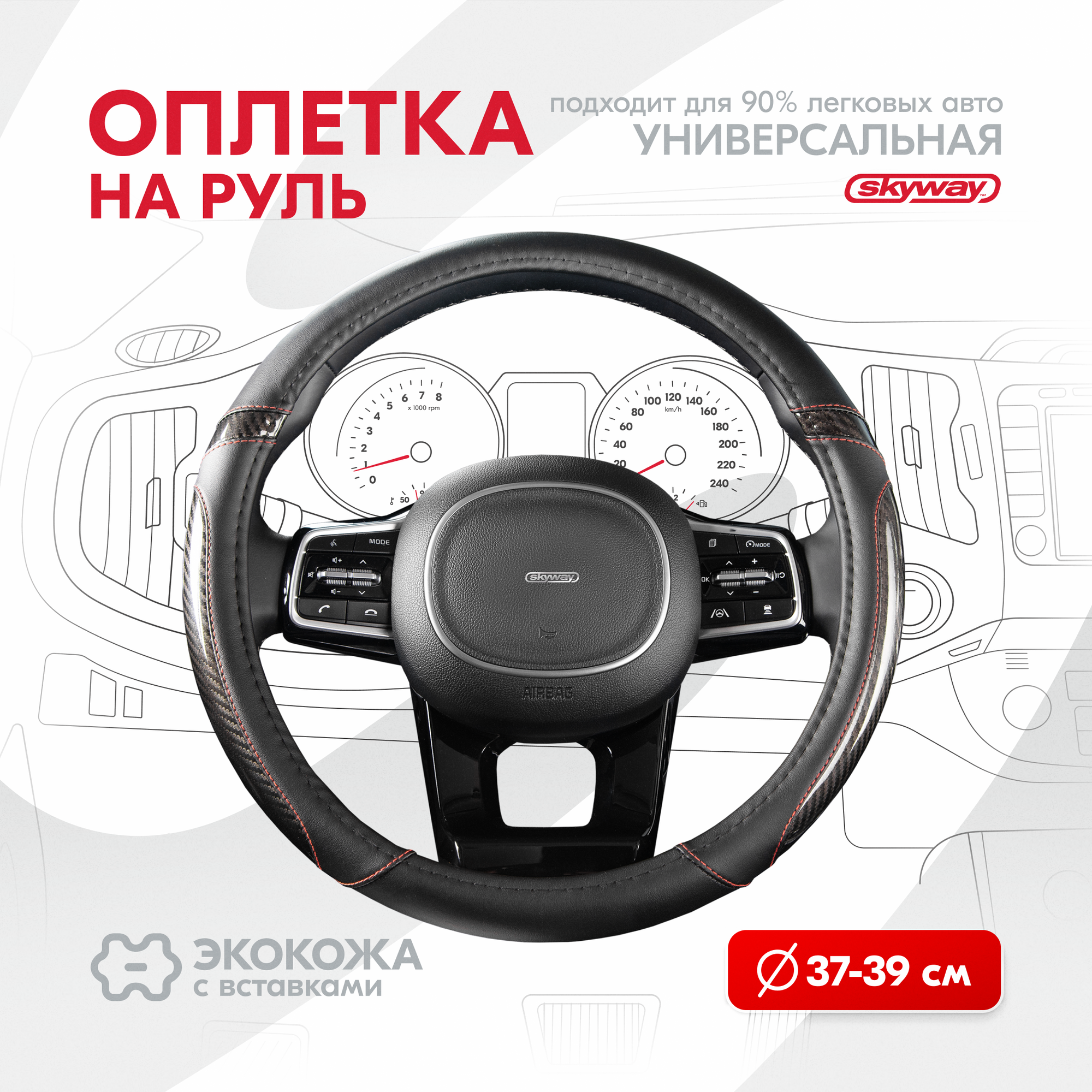 10 цен на Оплетка SKYWAY на руль из экокожи с карбоновыми вставками, диаметр 37/38/39 см, размер M
