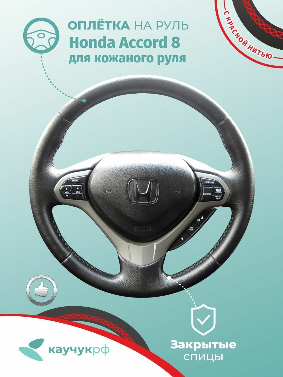 Отзывы на Оплетка на руль Honda Accord 8 для кожаного руля, черная кожа с красным швом.