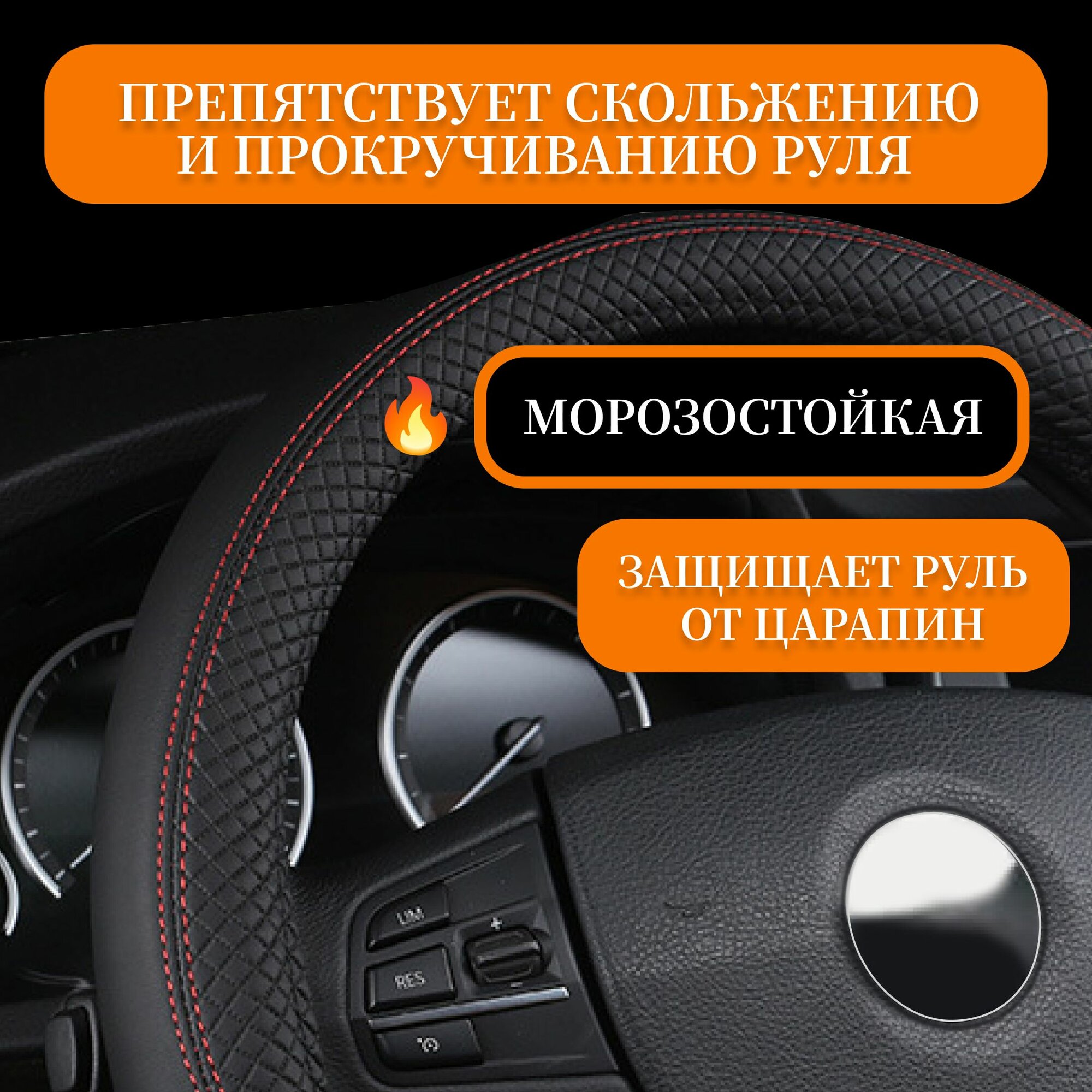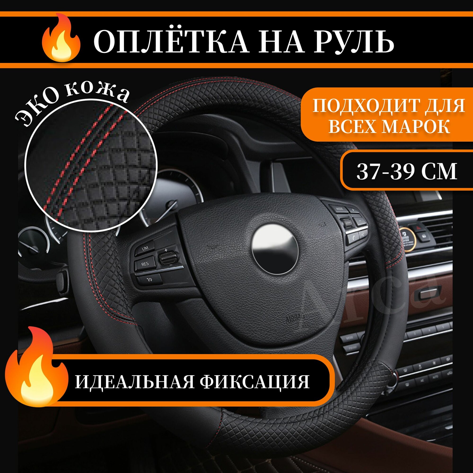 Отзывы на Оплетка чехол на руль автомобиля универсальная накладка из экокожи 37-39 см черная с красным(комплект из 2 штук)