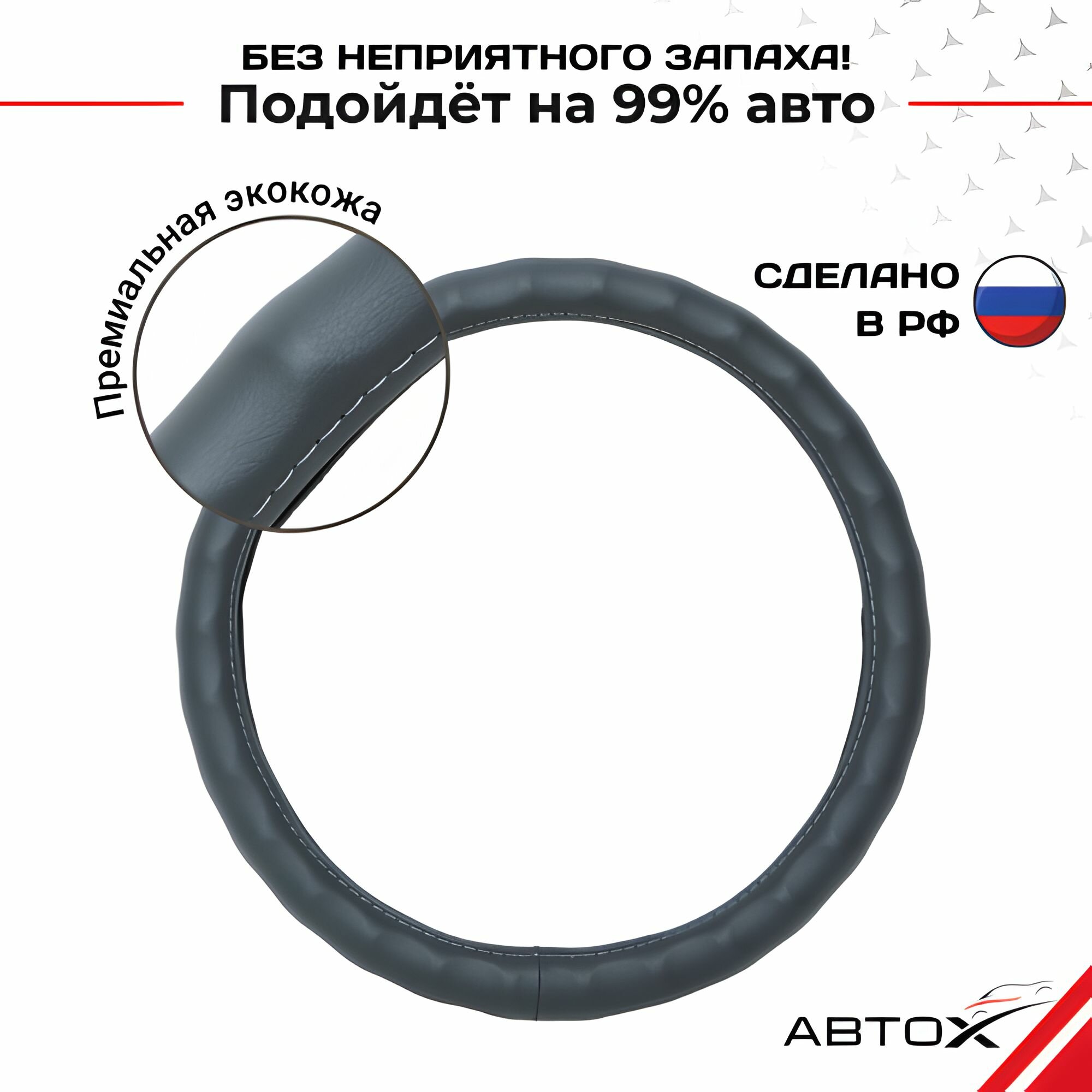10 цен на Оплетка чехол на руль. Размер M- 37-39 см. Темно серая. Экокожа.