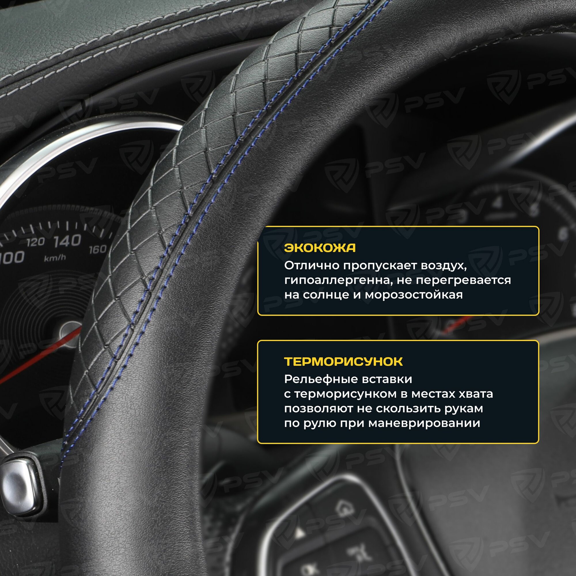 10 цен на Чехол на руль оплетка PSV CORRECT (Черный/Отстрочка синяя), размер M 37-39 см