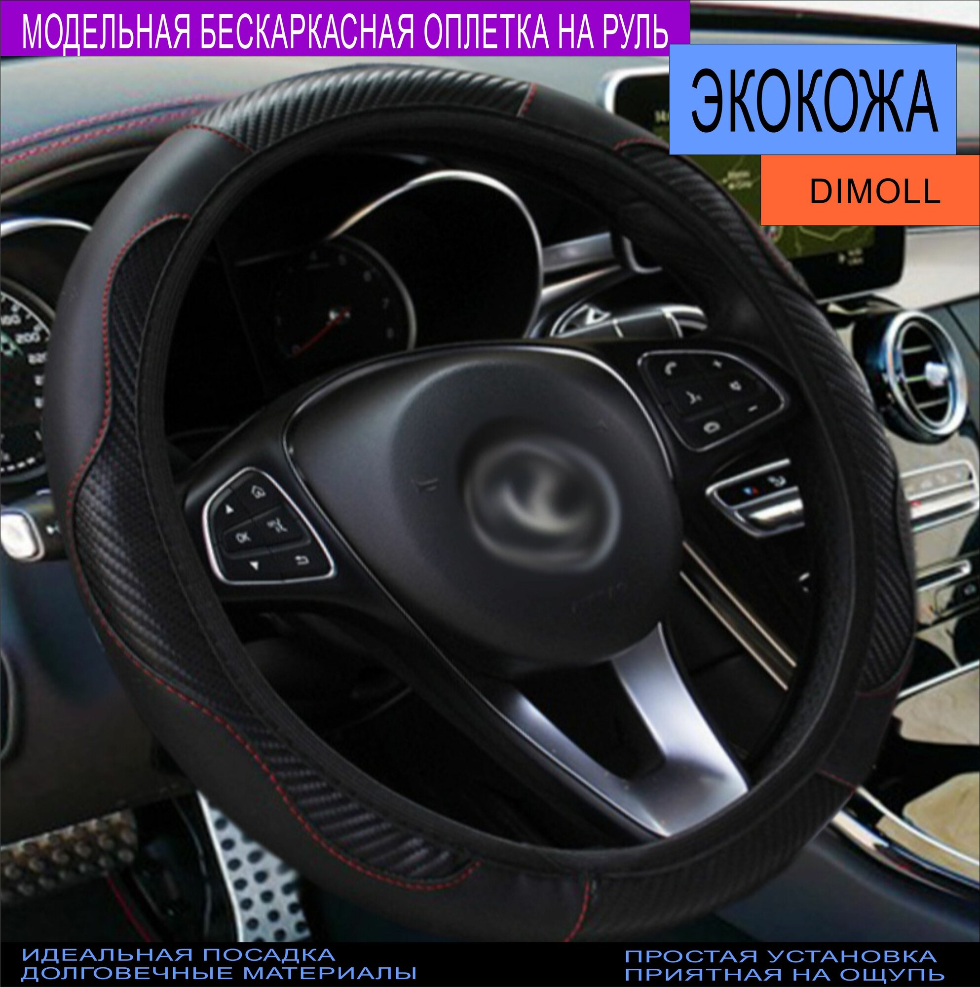 Оплетка на руль универсальная из экокожи «CARBON» М 37-39 см (чёрная, строчка чёрная) belais #21608