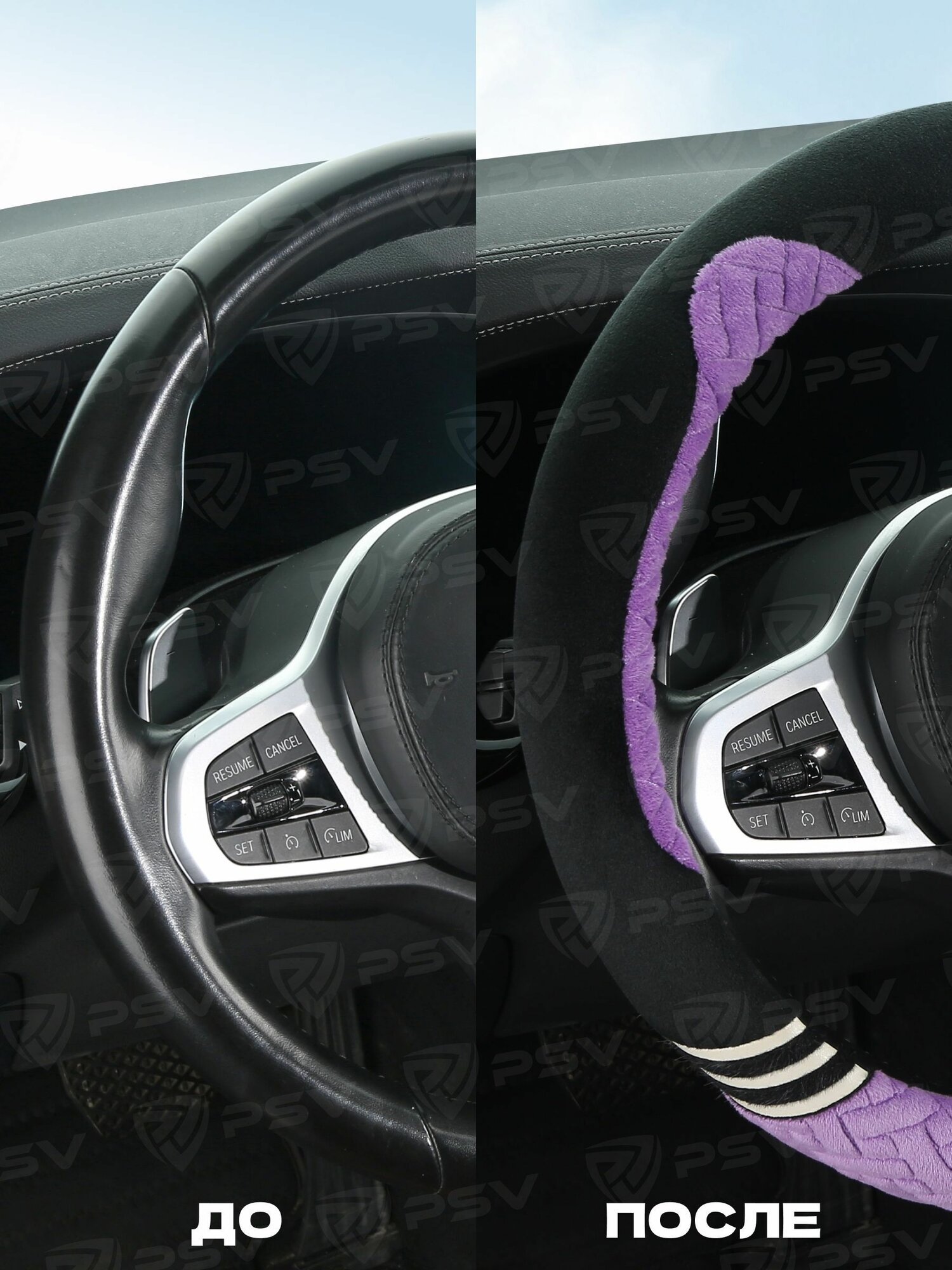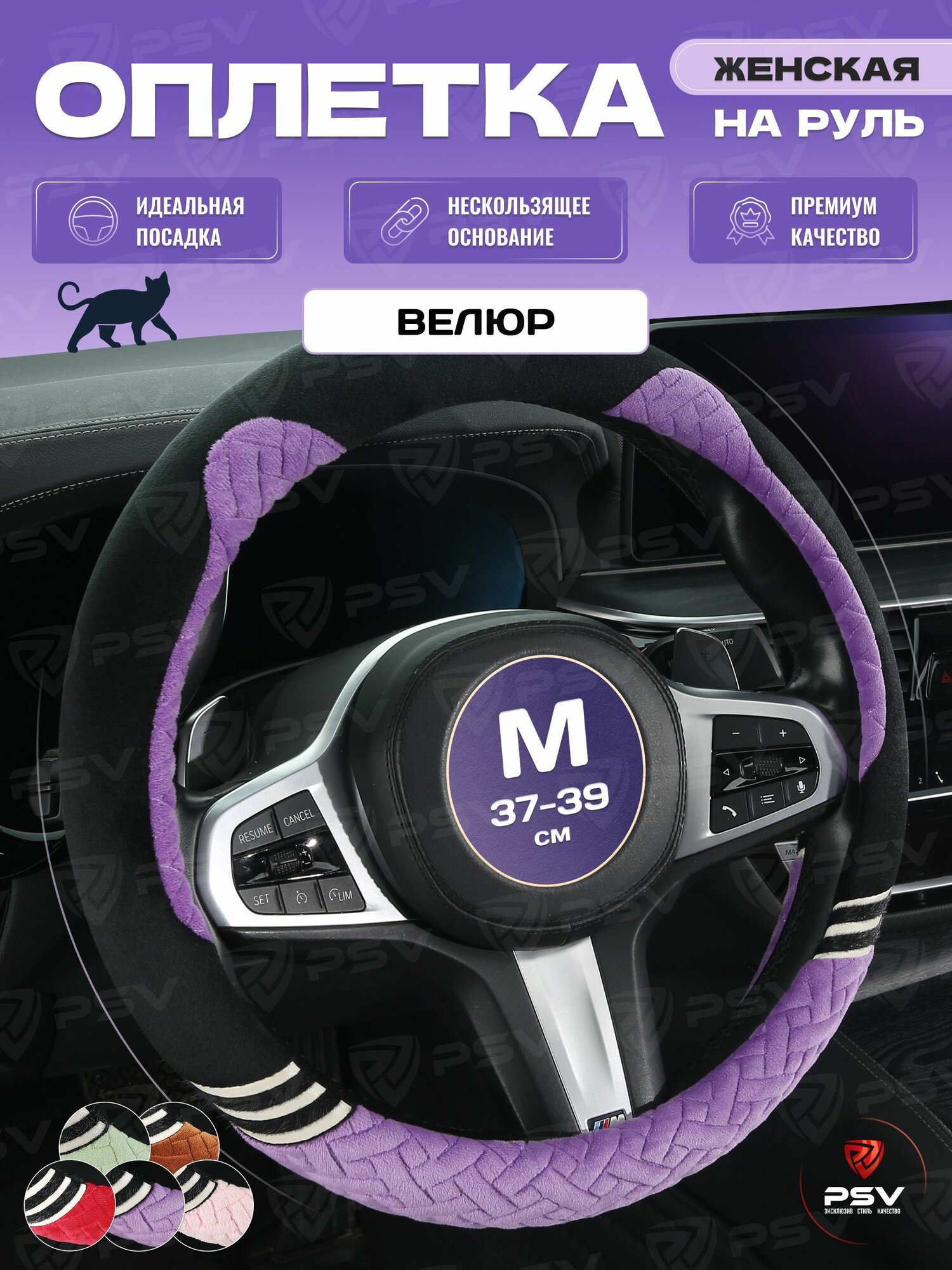 Отзывы на Чехол на руль оплетка PSV KISA PLUS (Черно-фиолетовый) M, велюр M 37-39 см