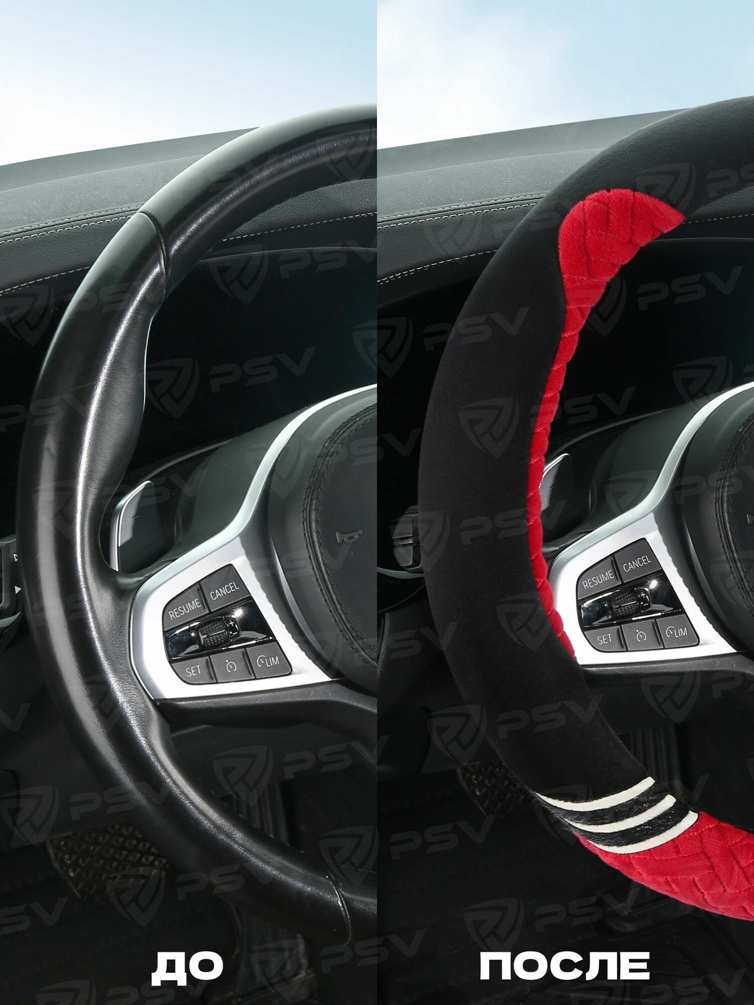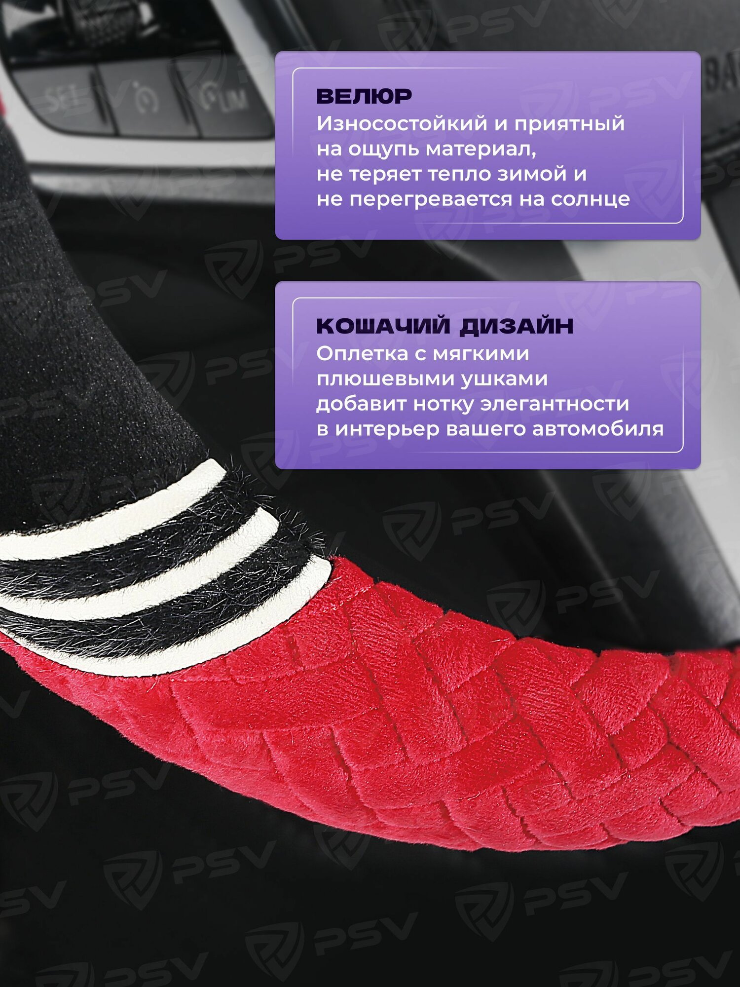 10 цен на Чехол на руль оплетка PSV KISA PLUS (Черно-красный) M, велюр M 37-39 см