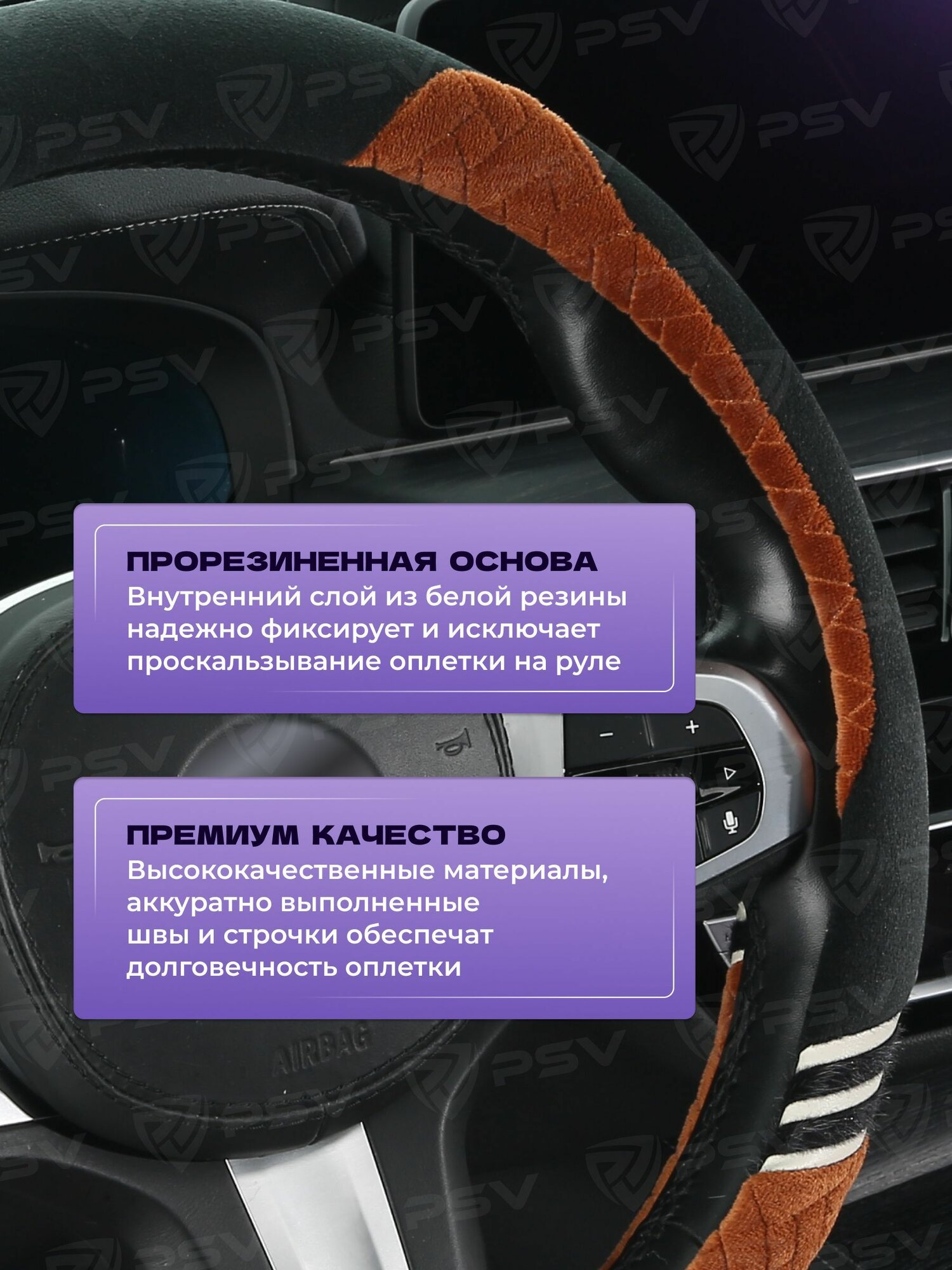 10 цен на Чехол на руль оплетка PSV KISA PLUS (Черно-коричневый) M, велюр M 37-39 см