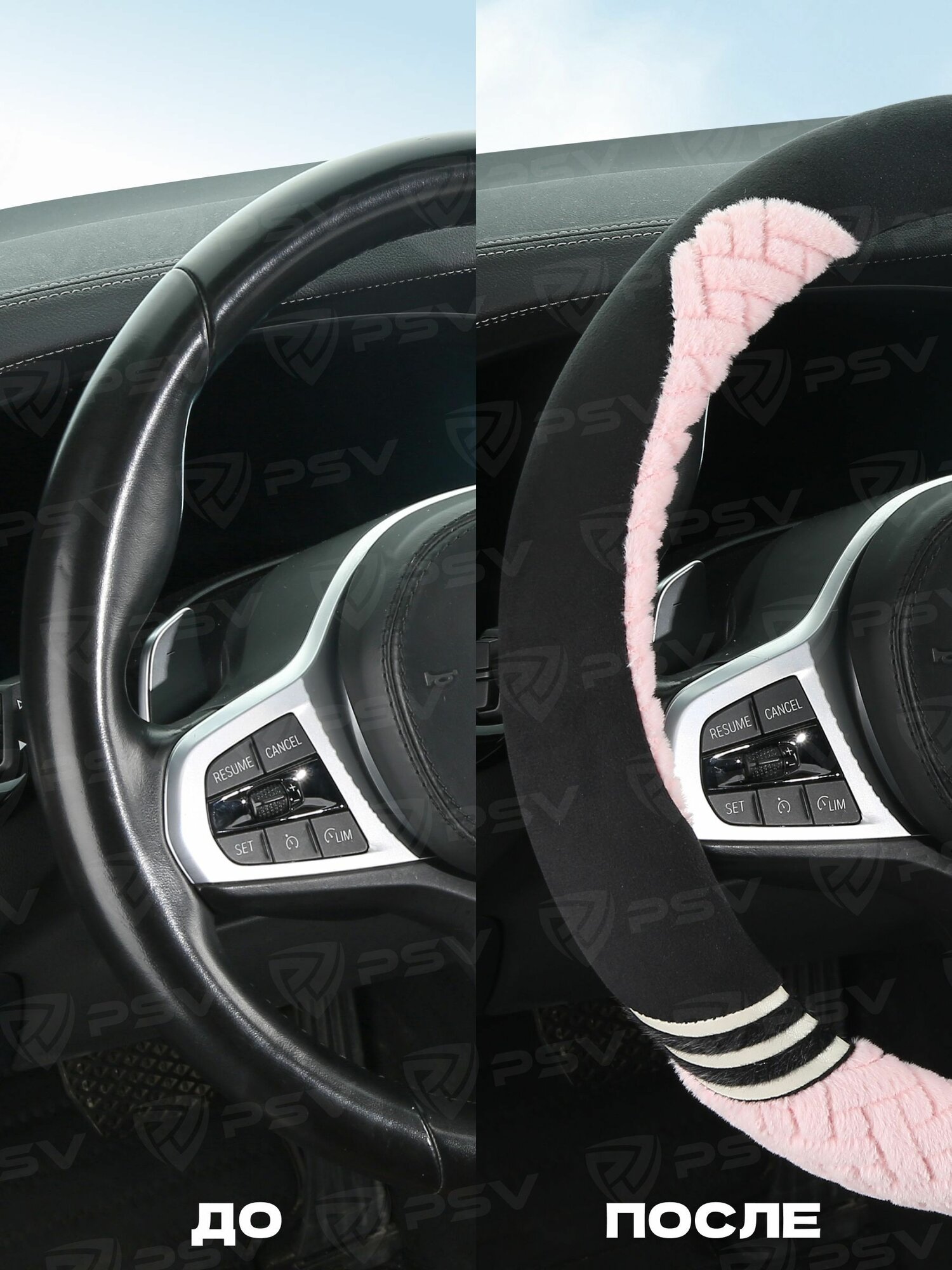 10 цен на Чехол на руль оплетка PSV KISA PLUS (Черно-розовый) M, велюр M 37-39 см