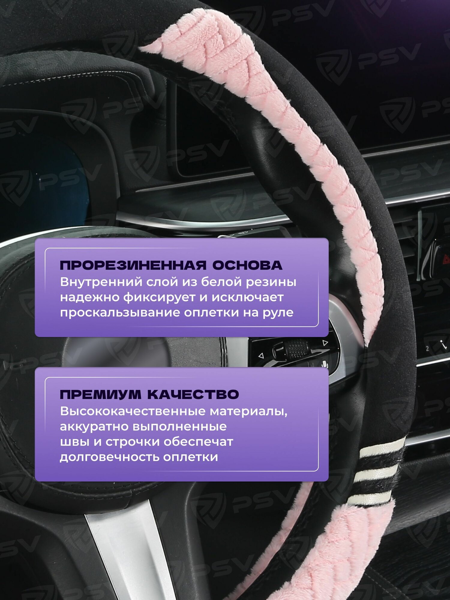 Отзывы на Чехол на руль оплетка PSV KISA PLUS (Черно-розовый) M, велюр M 37-39 см