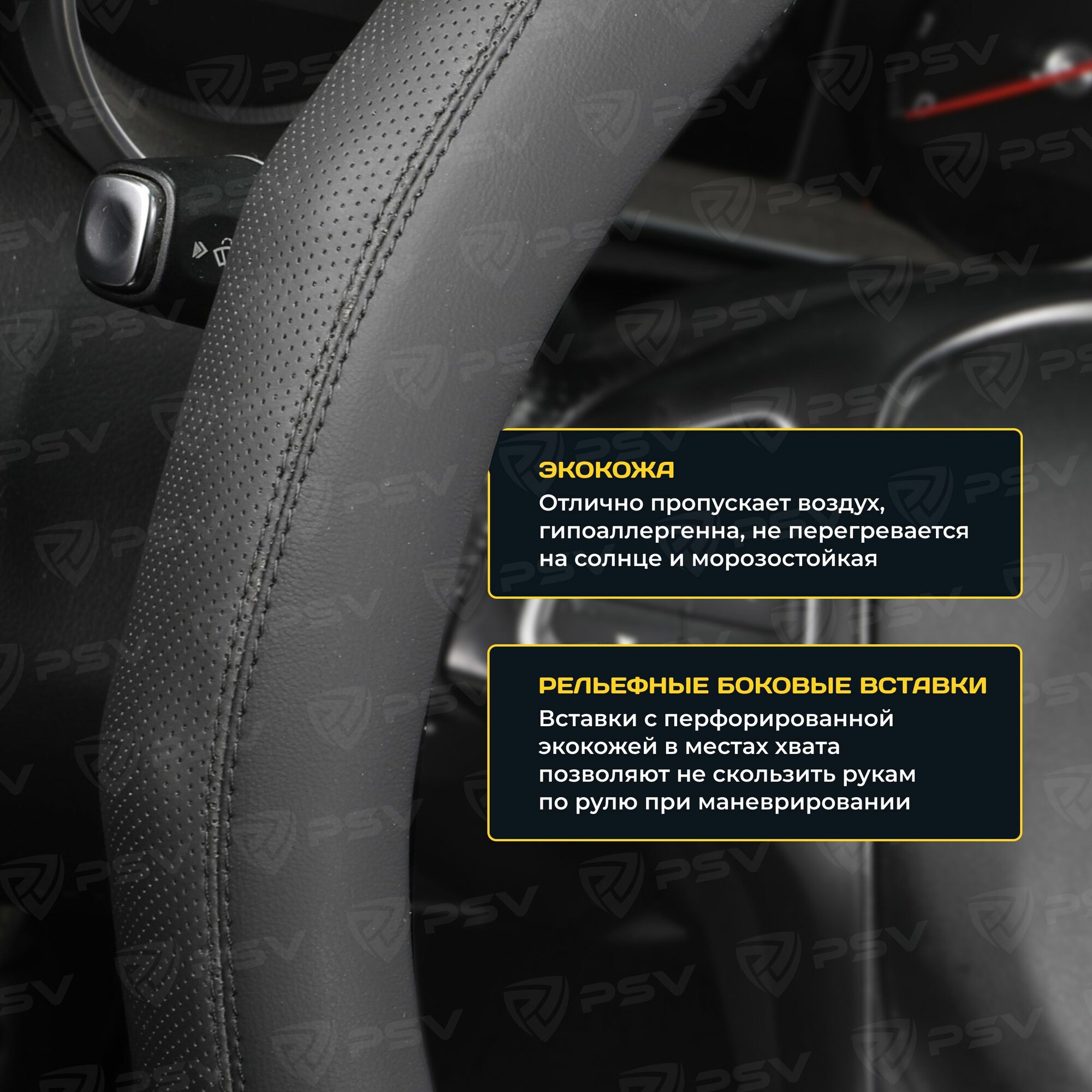 Оплетка чехол на руль PSV TERMIT (Черно-Бежевый) M 37-39 см, экокожа, 136862