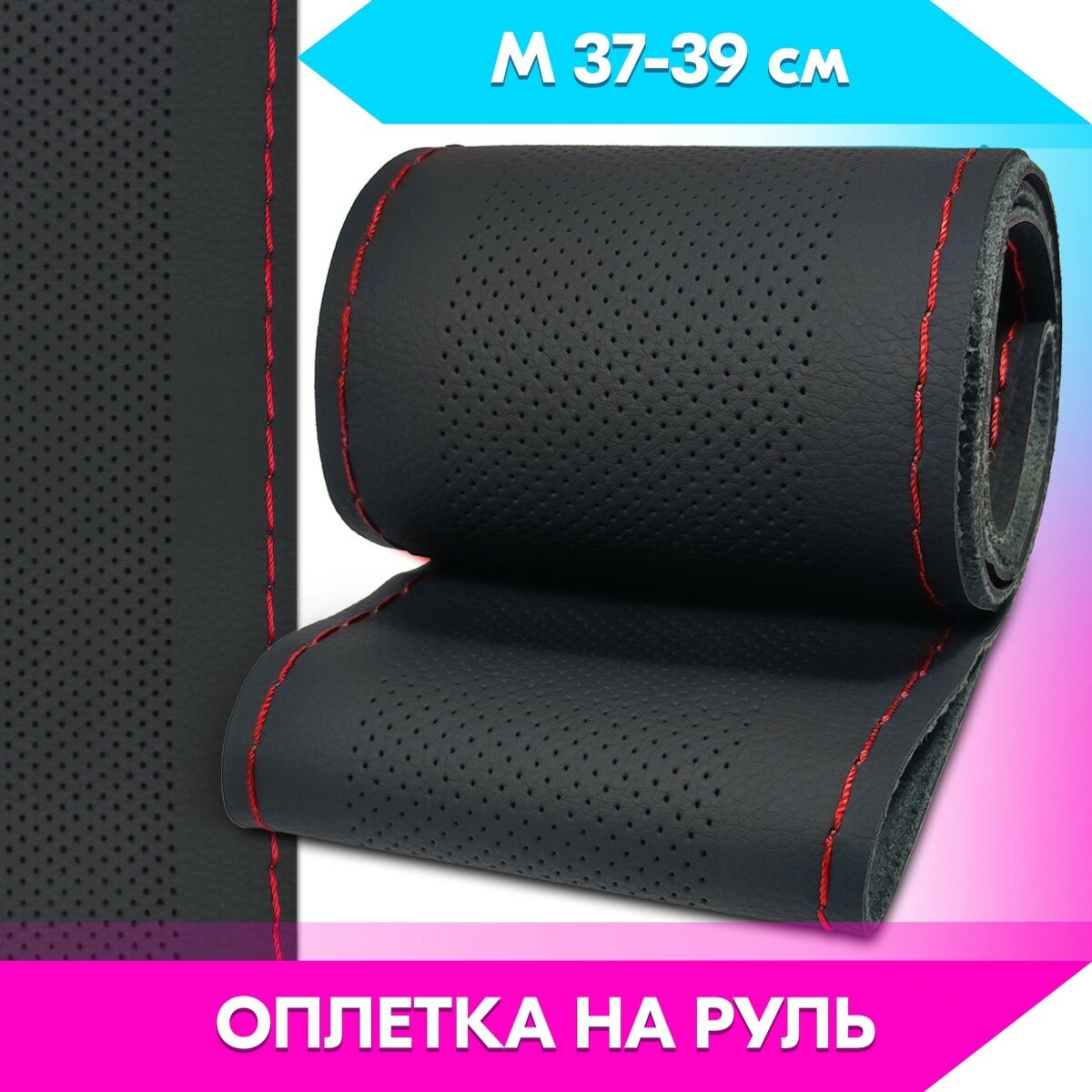 Отзывы на Оплетка на руль универсальная из экокожи «DESIGN K10» М 37-39 см (чёрная, строчка красная) belais #21975