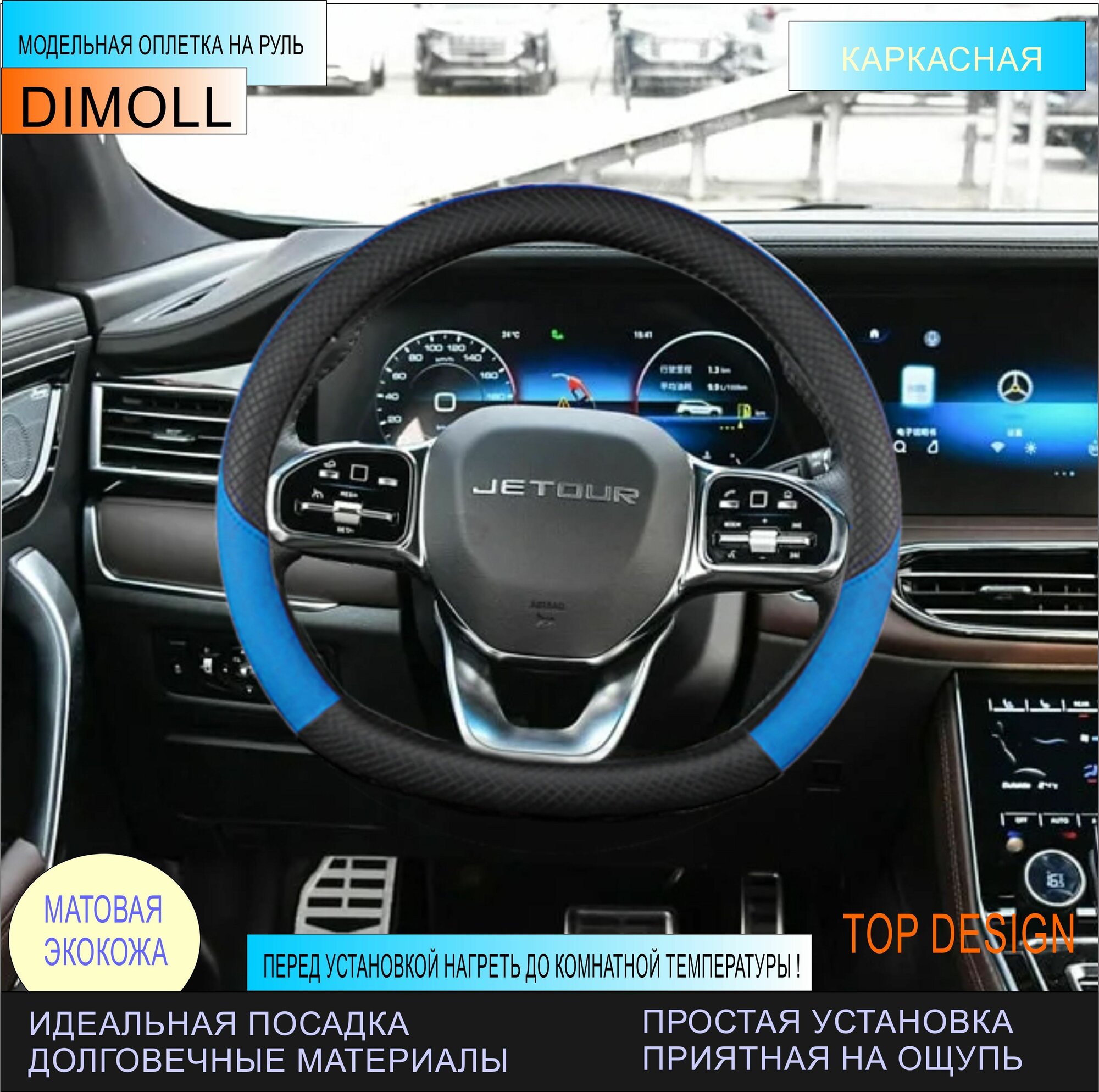Отзывы на Оплетка Jetour X70 PLUS 2020 - н. в. / Чехол на руль экокожа черный / голубой (D-образный)