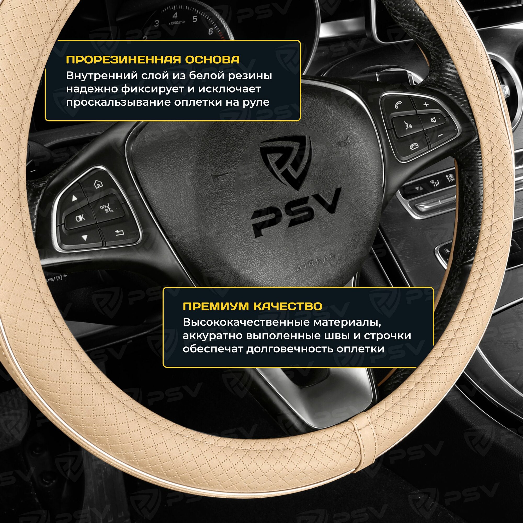 Оплетка чехол на руль PSV GREAT (Бежевый) M37-39 см, экокожа, 136830