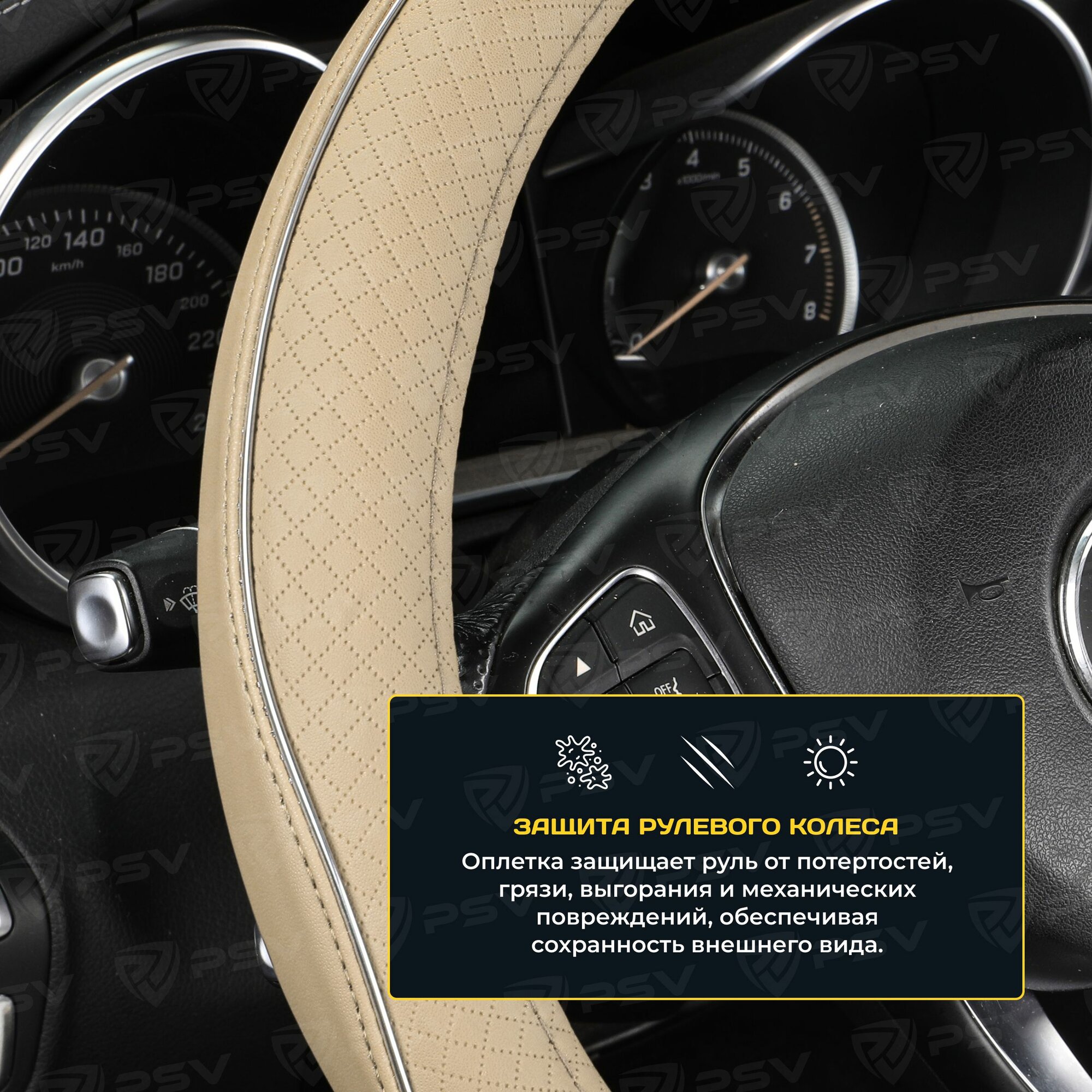 Оплётка на руль PSV CONVEX PRO (Бежевый) M, вельвет 136086