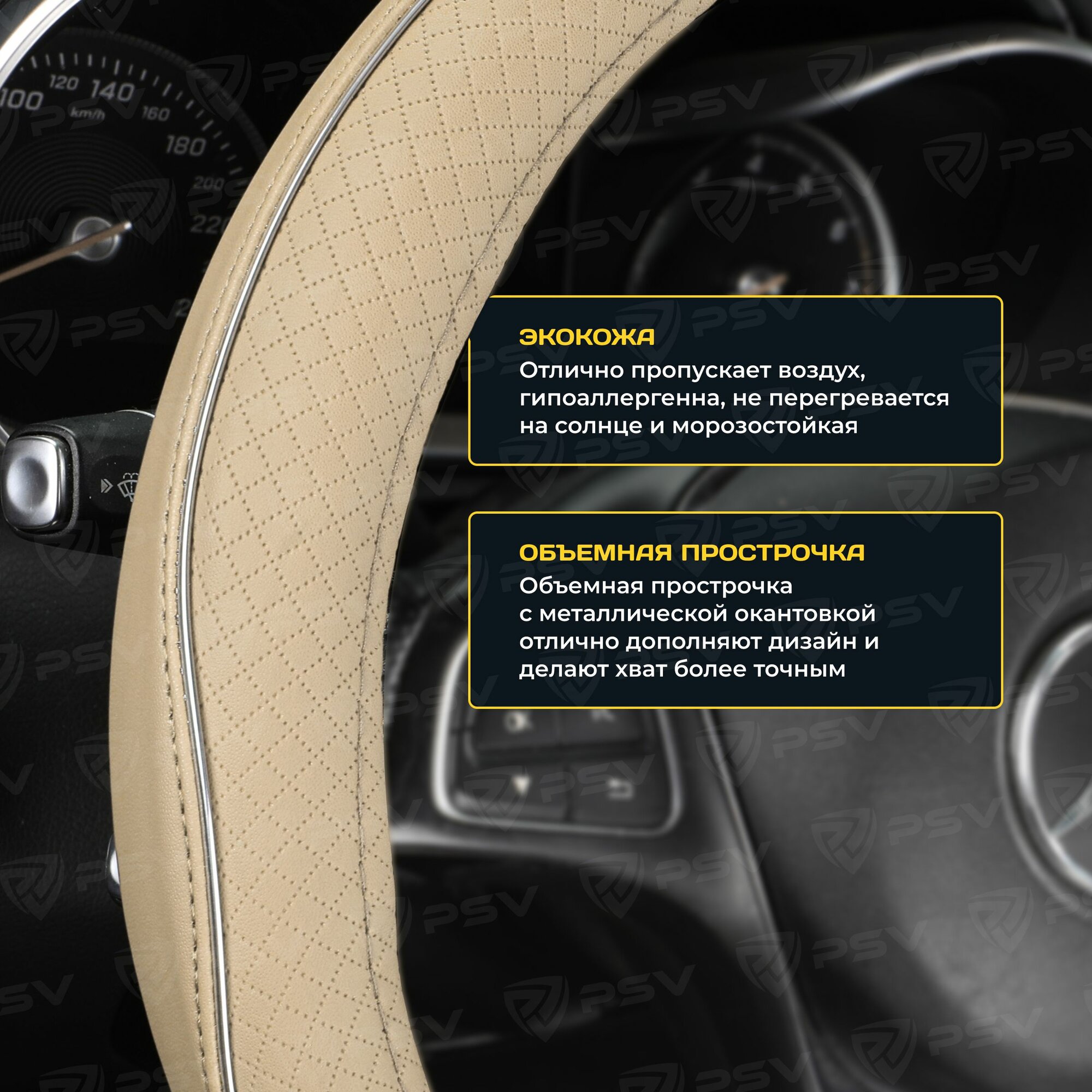 Оплетка чехол на руль PSV TERMIT (Черно-Бежевый) M 37-39 см, экокожа, 136862
