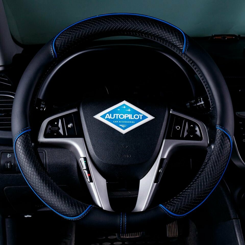 10 цен на Оплетка на руль Чери Тигго 7 Про Макс (2022 - 2024) внедорожник 5 дверей / Chery Tiggo 7 Pro Max, Экокожа, (накидка / чехол на руль) Черный и синий кант