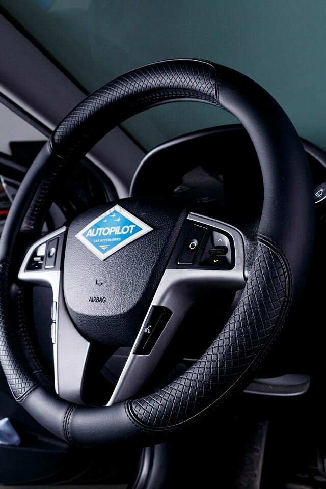 Оплетка на руль Лада Веста (2022 - 2024) седан / LADA (ВАЗ) Vesta, Экокожа, (накидка / чехол на руль) Черный