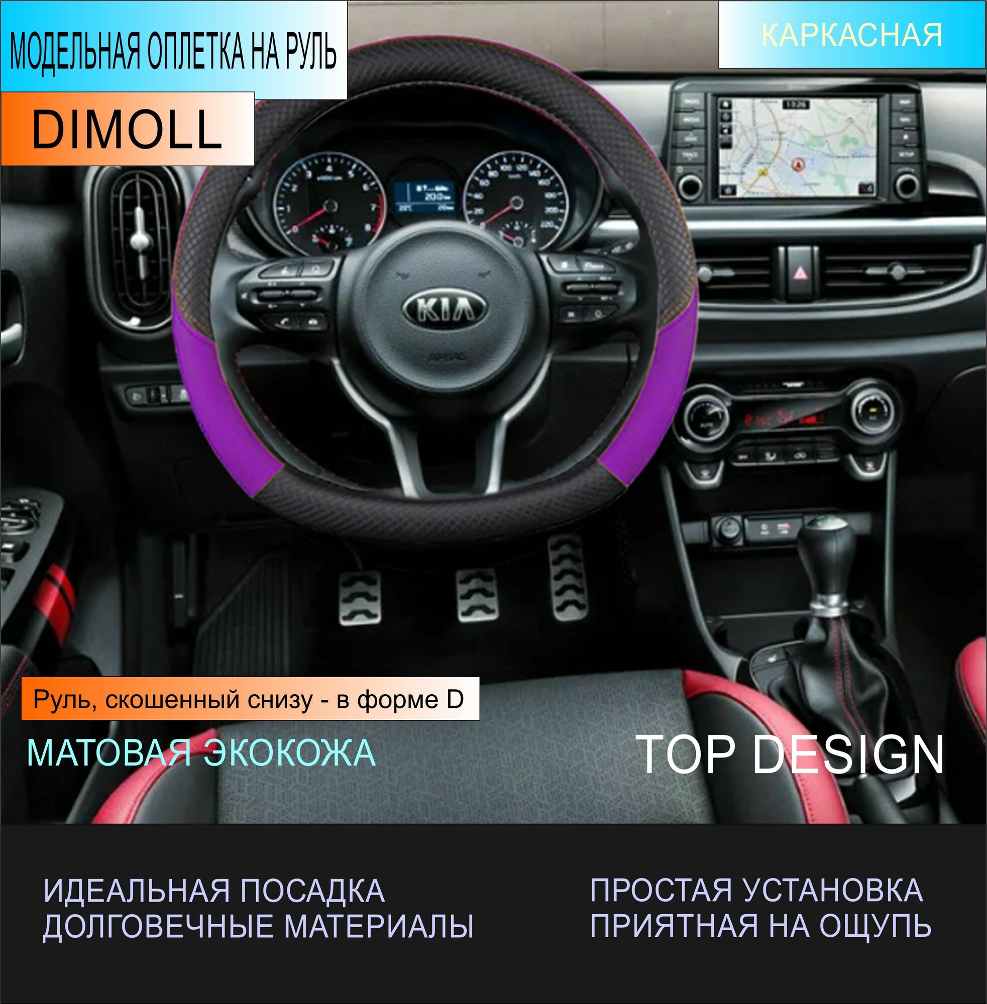 Оплетка Kia Optima 4 GT 2015 - 2020 / Чехол на руль экокожа черный / фиолетовый (D-образный) 37-38 см информация: