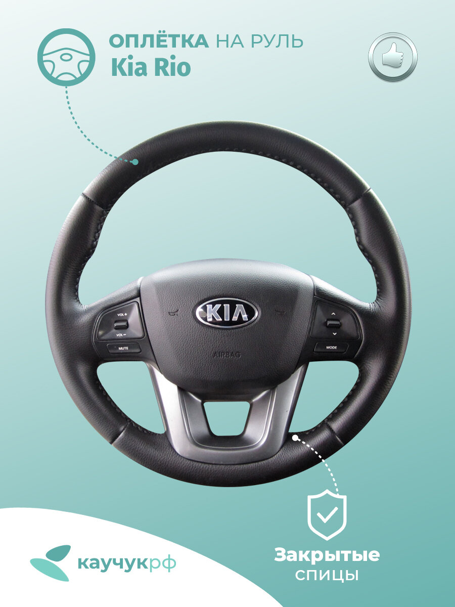Отзывы на Оплетка на руль "Kia Rio " для резинового руля , черная кожа с черным швом.