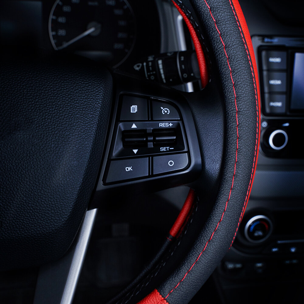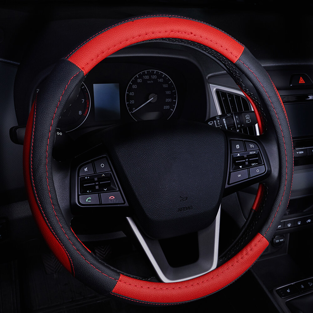 10 цен на Оплетка на руль кожаная спорт дизайн, цвет черно-красный