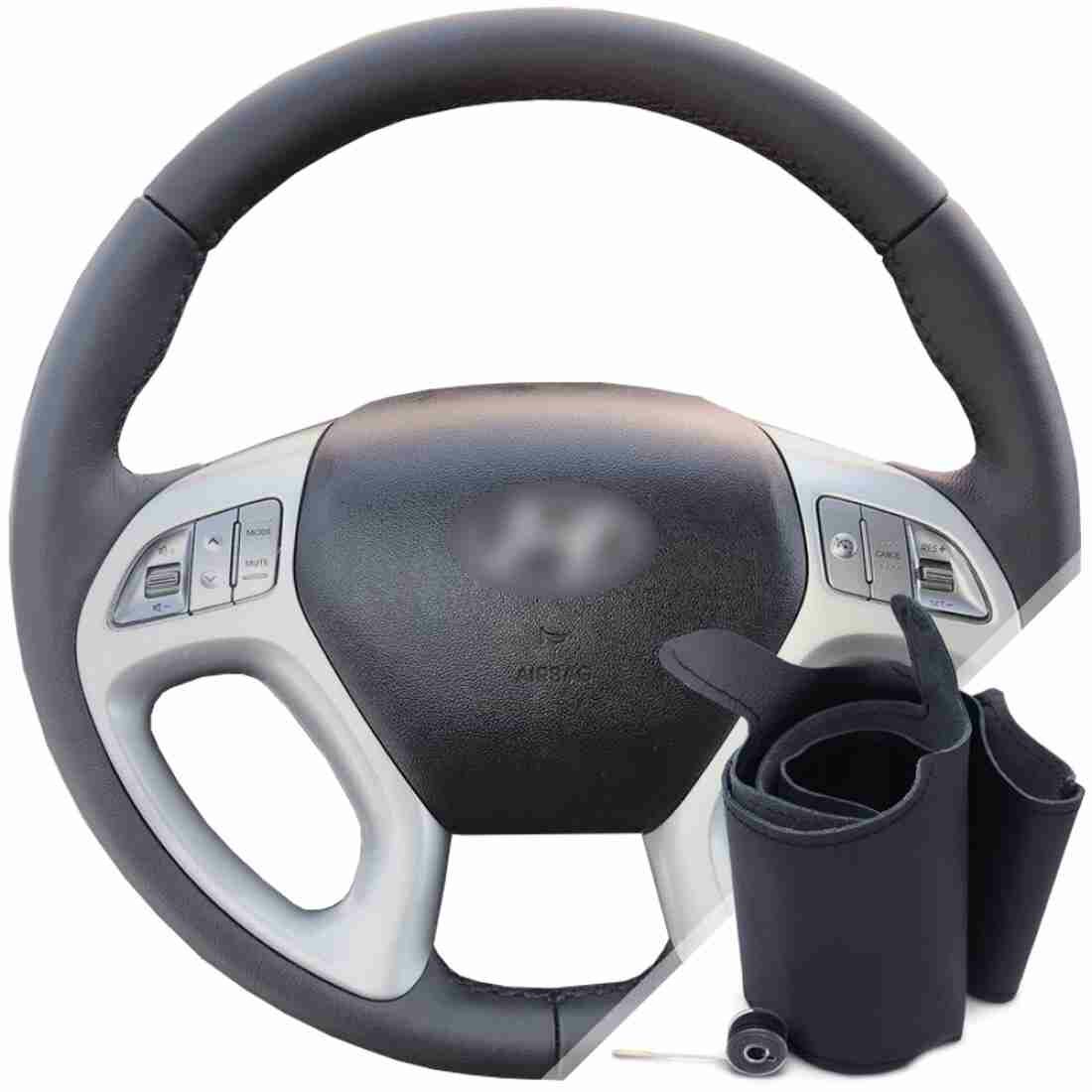 10 цен на Оплетка на руль из натуральной кожи Hyundai ix35 I 2010-2015 г. в. (для замены штатной кожи на руле без подогрева, черная) belais #16741