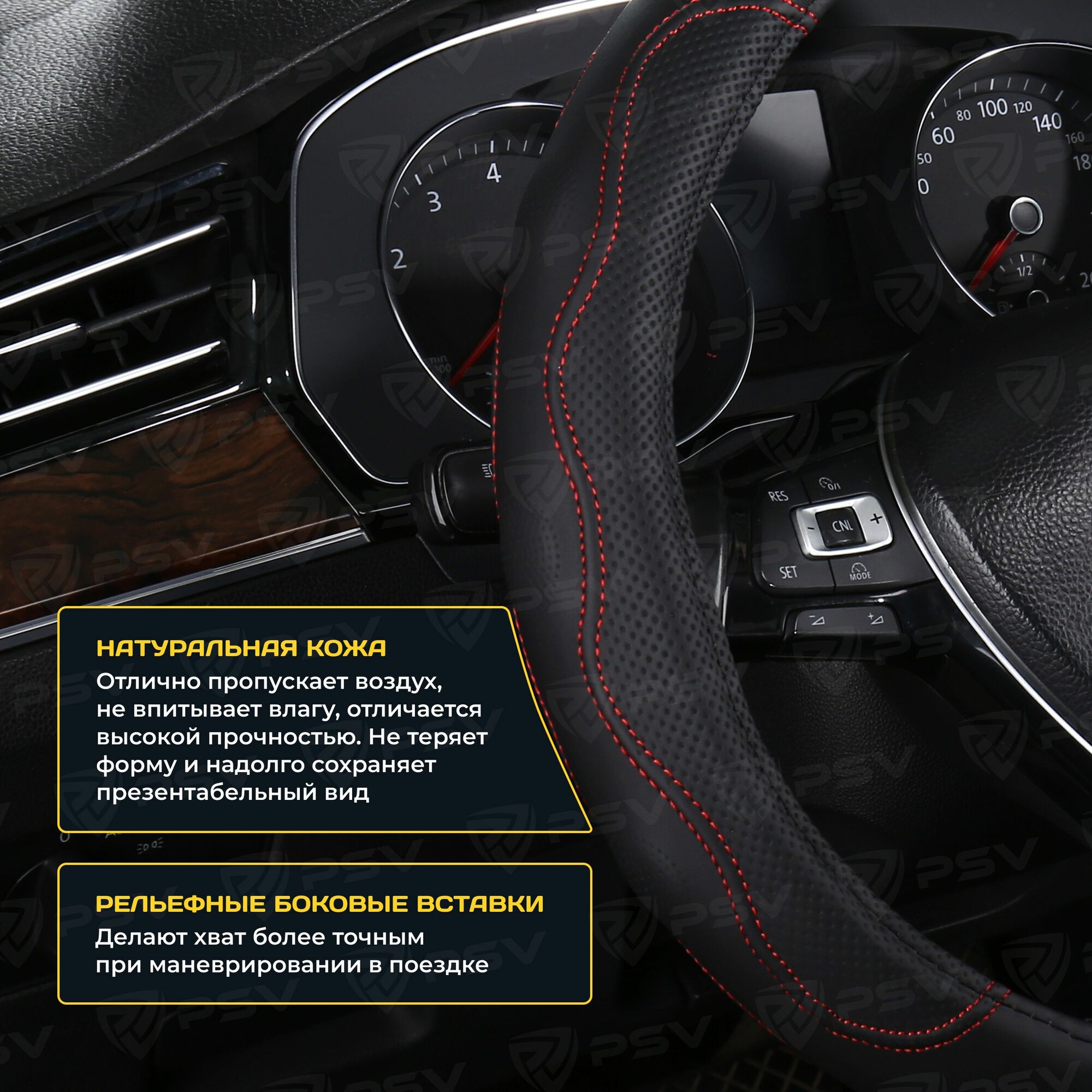 Оплетка чехол на руль PSV TERMIT (Черно-Бежевый) M 37-39 см, экокожа, 136862