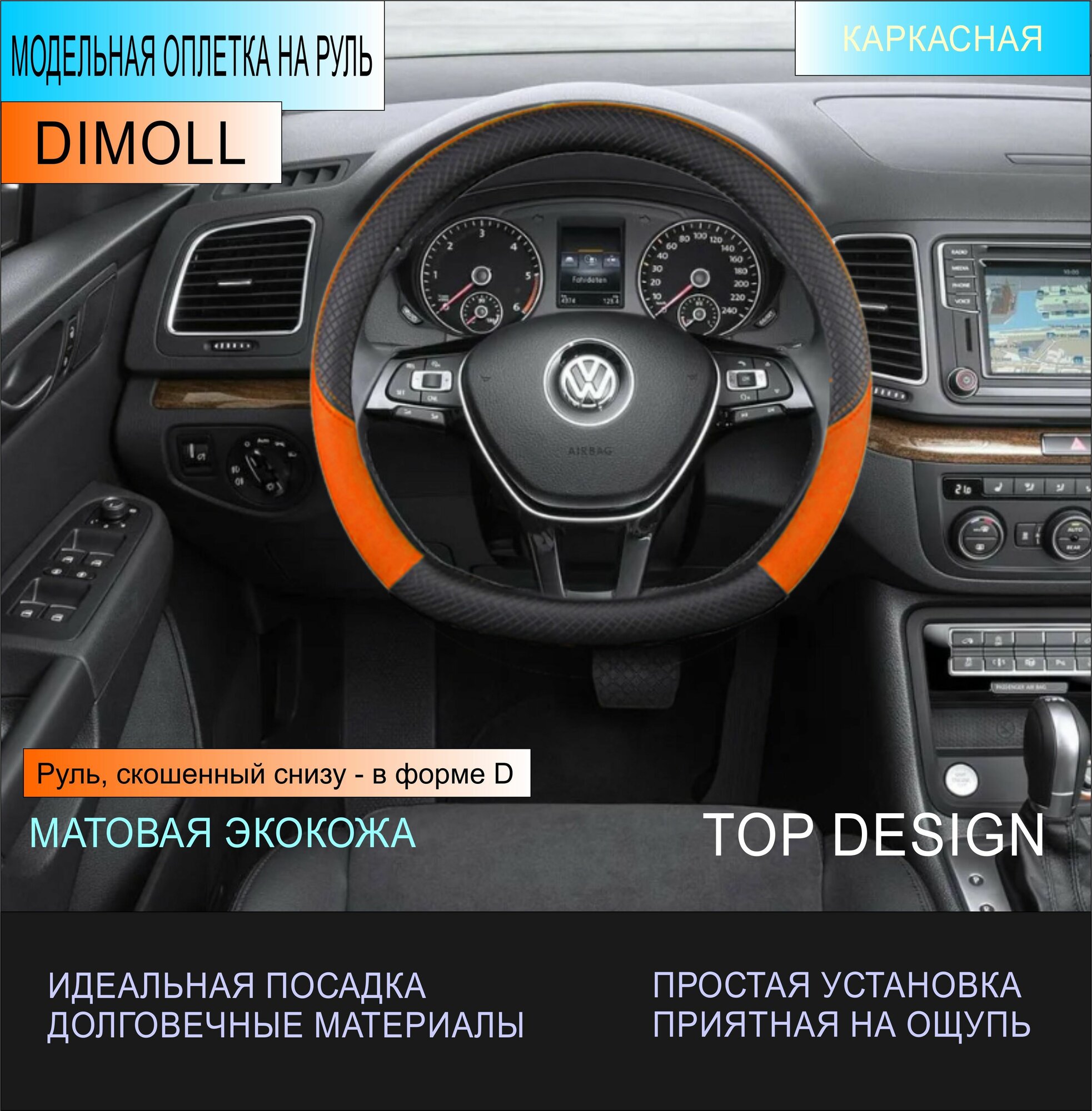 Отзывы на Оплетка Volkswagen Golf 7 2012 - 2020 / Чехол на руль экокожа черный / оранжевый (D-образный) 37-38 см