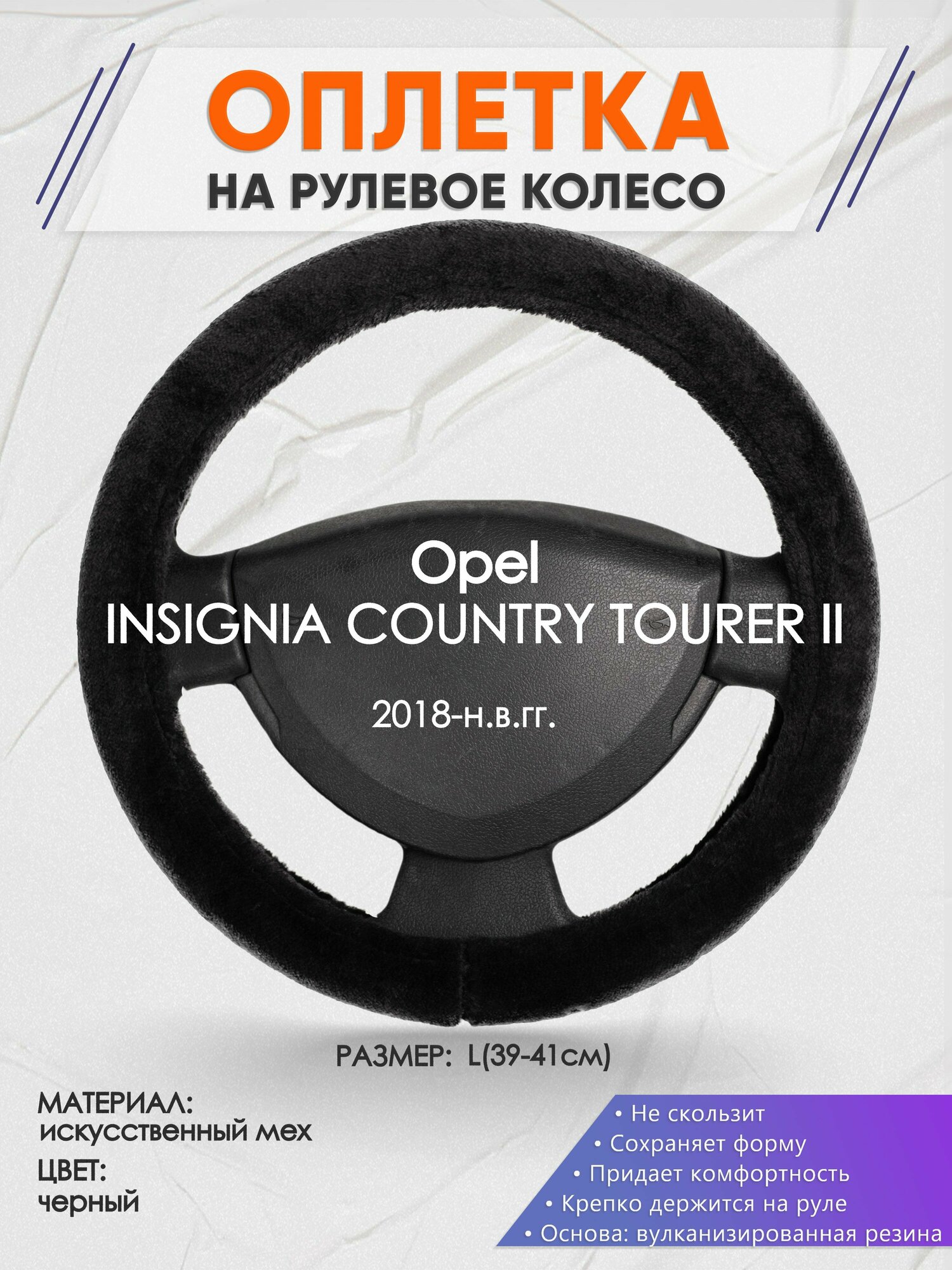 Отзывы на Оплетка на руль для Opel INSIGNIA COUNTRY TOURER 2(Опель Инсигниа) 2018-н. в, L(39-41см), Искусственный мех 45
