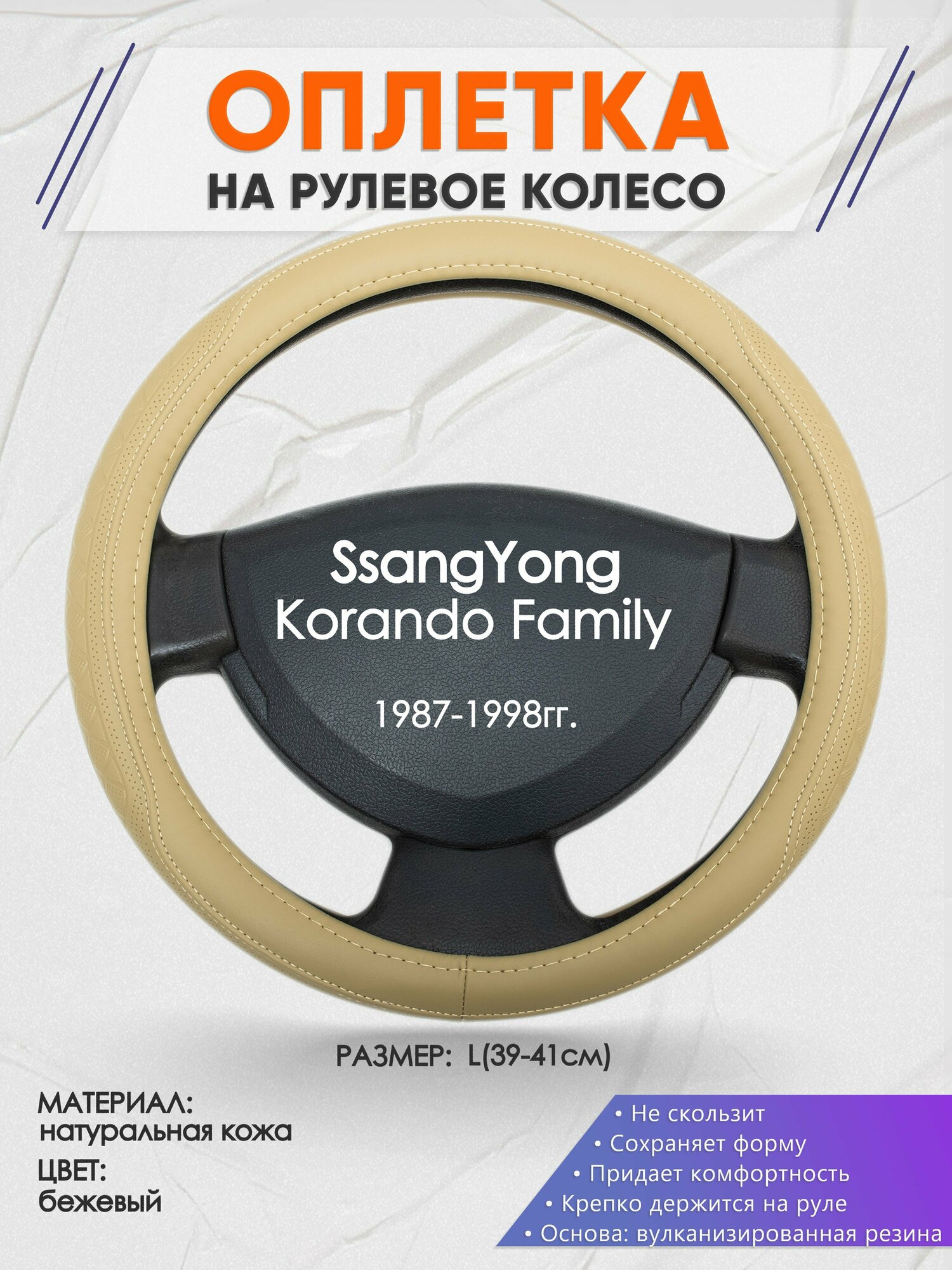 Оплетка на руль для SsangYong Korando Family(Санг Енг корандо фемили) 1987-1998, L(39-41см), Натуральная кожа 91 информация: