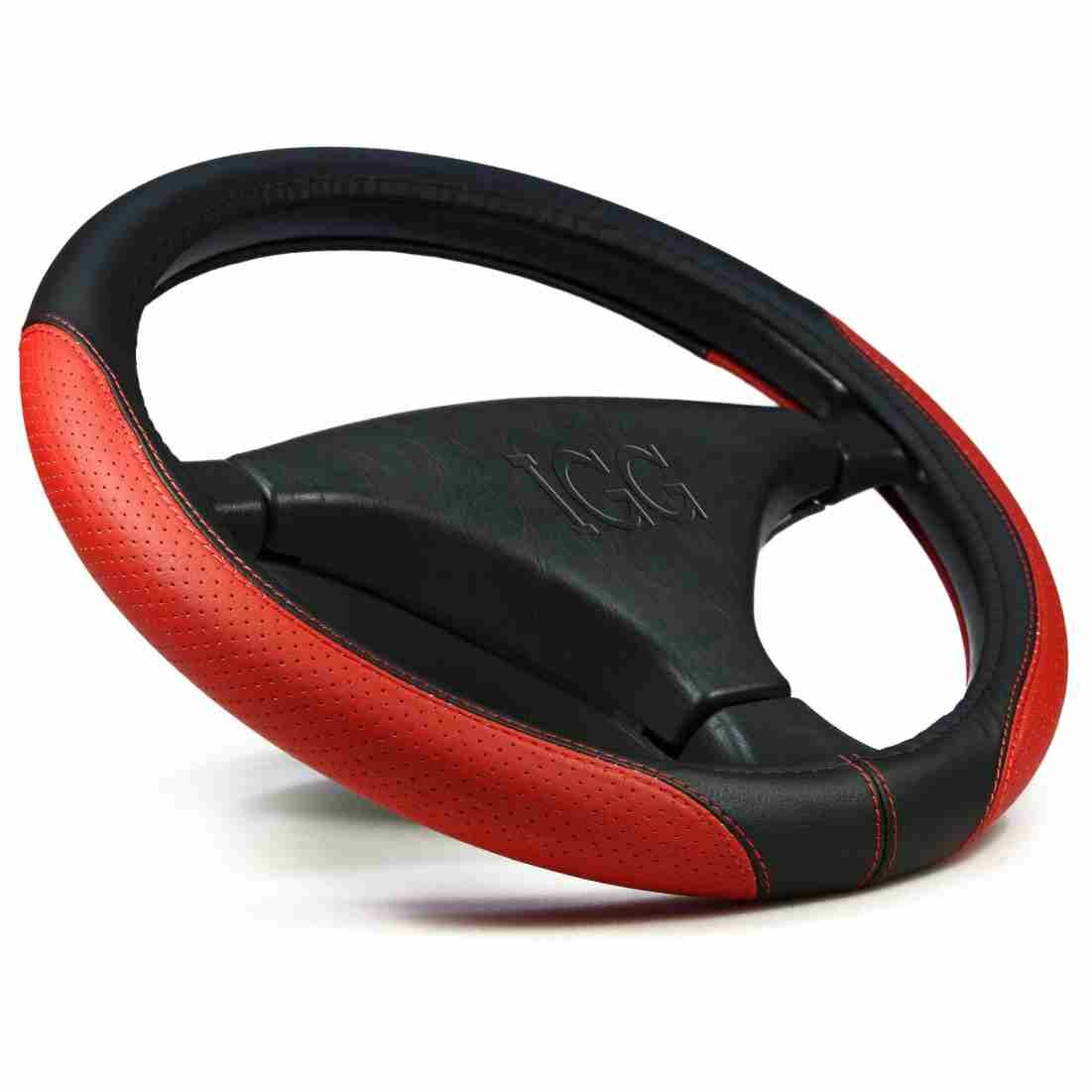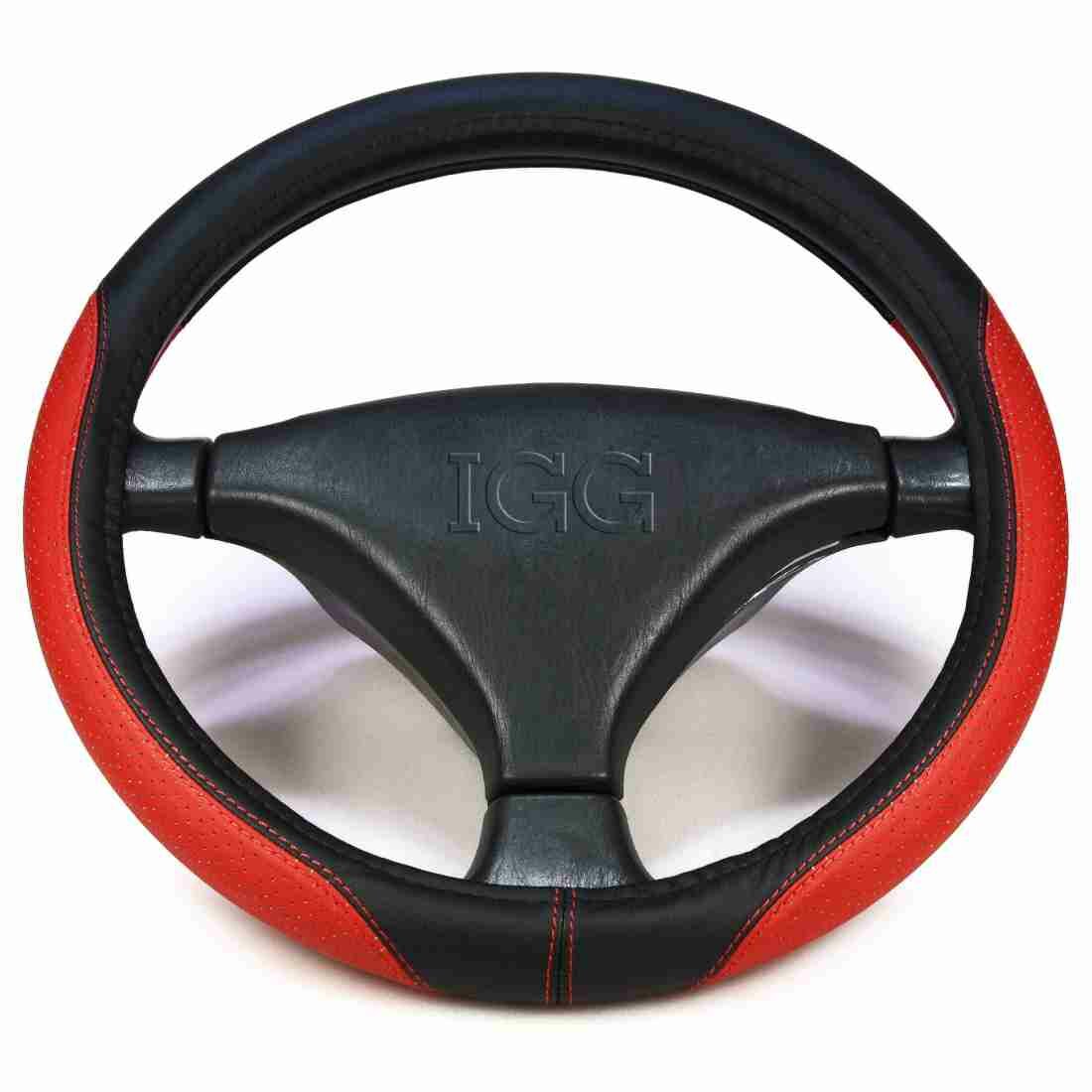10 цен на Оплетка на руль универсальная «IGG» (М 37-39 см, экокожа + перфорация красная, строчка красная) belais #0288