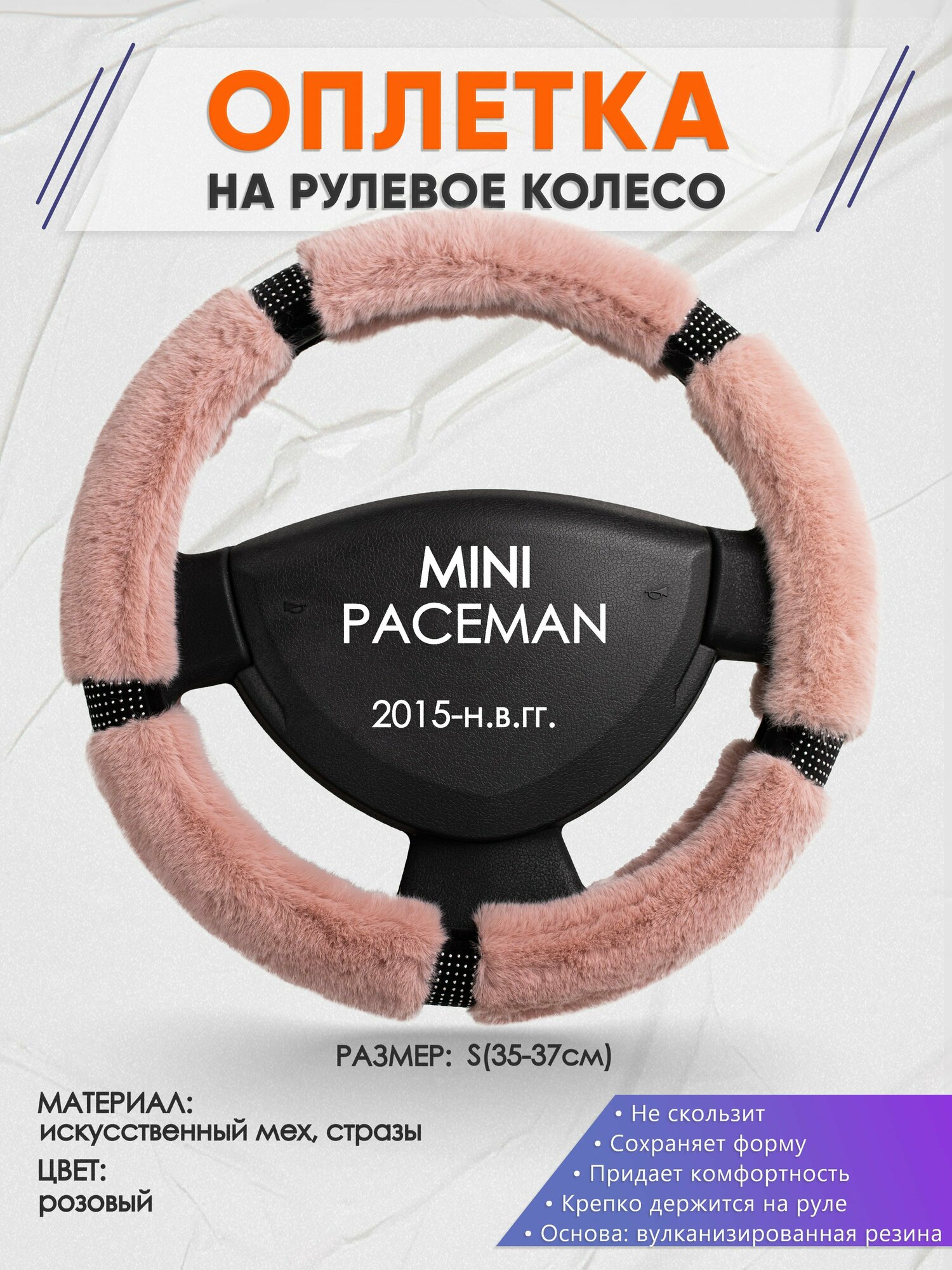Оплетка на руль для MINI PACEMAN(мини Пасемен) 2015-н. в, S(35-37см), Искусственный мех 48 информация: