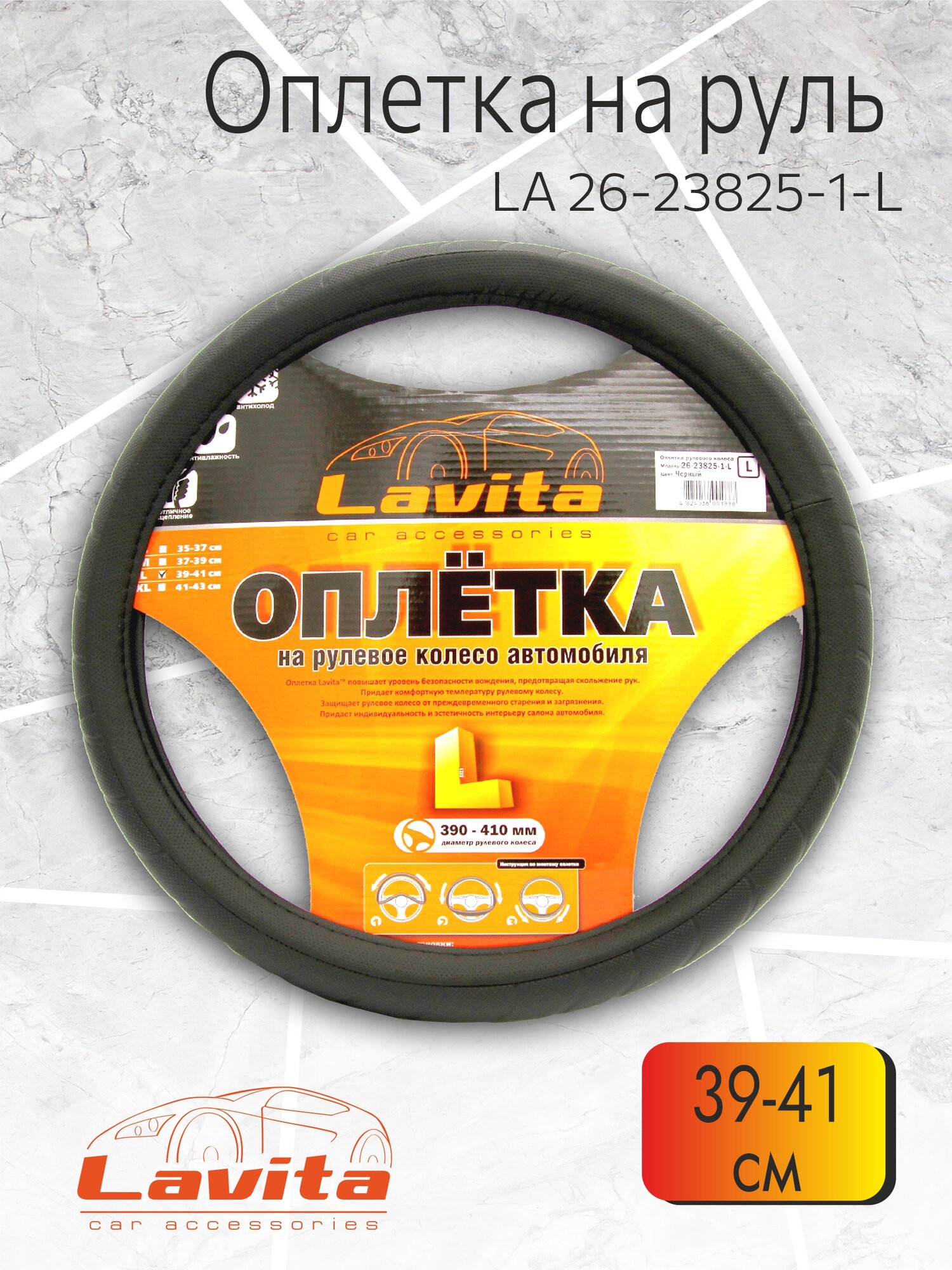 10 цен на Оплетка рулевого колеса, LA 26-23825-1-L, ПВХ, черная, L (39-41СМ)